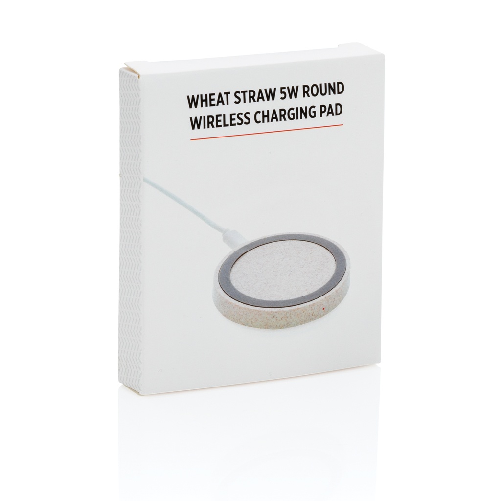 Лого трейд бизнес-подарки фото: Круглая беспроводная зарядная панель Wheat Straw 5 Вт