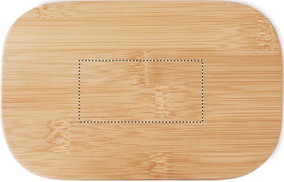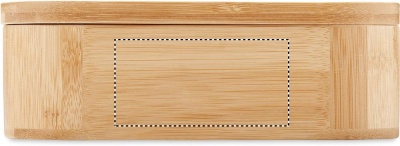 Бамбуковый ланчбокс со съемным разделителем и съемным эластичным ремешком. Только для сухих продуктов. Вместимость: 650 мл.