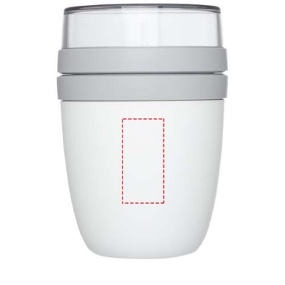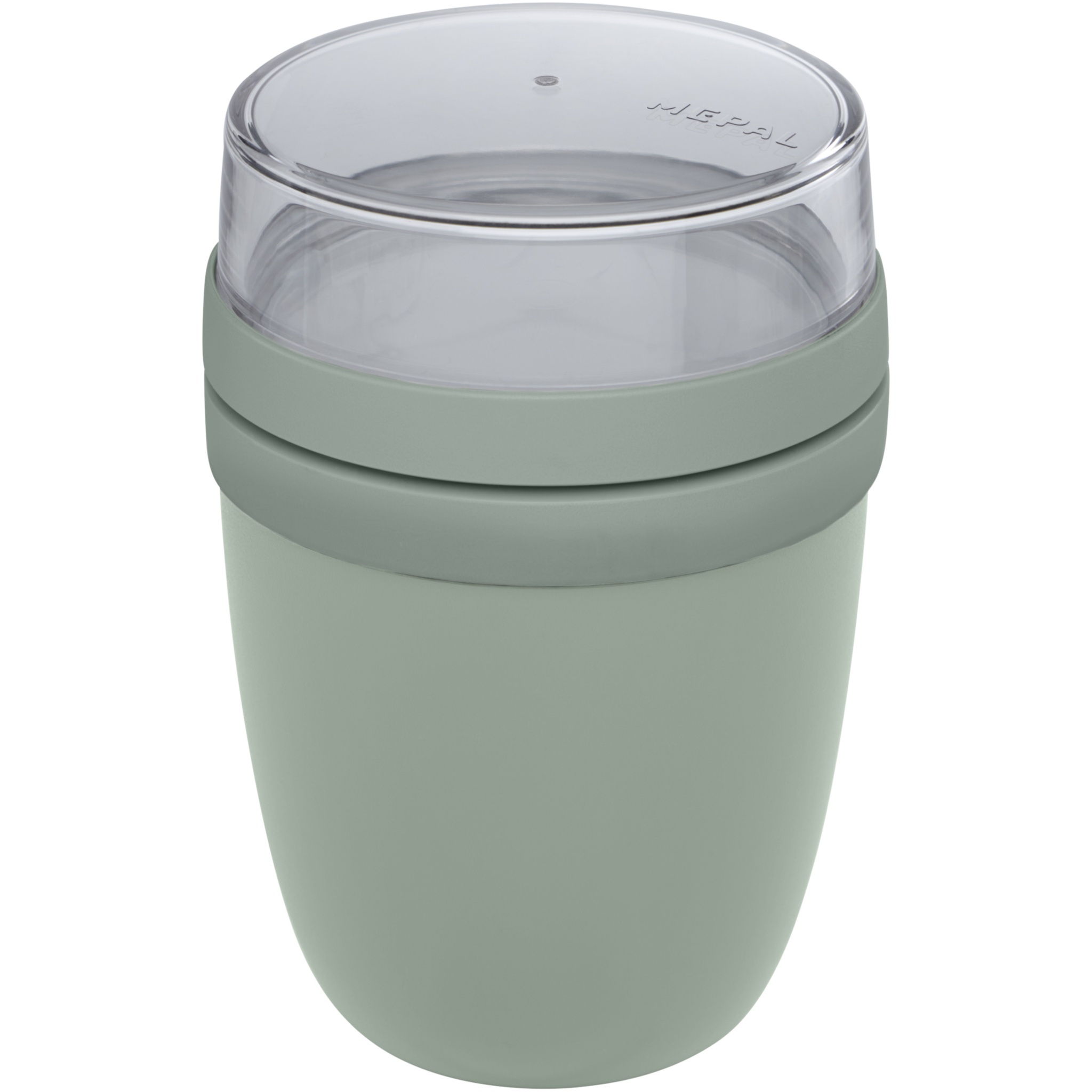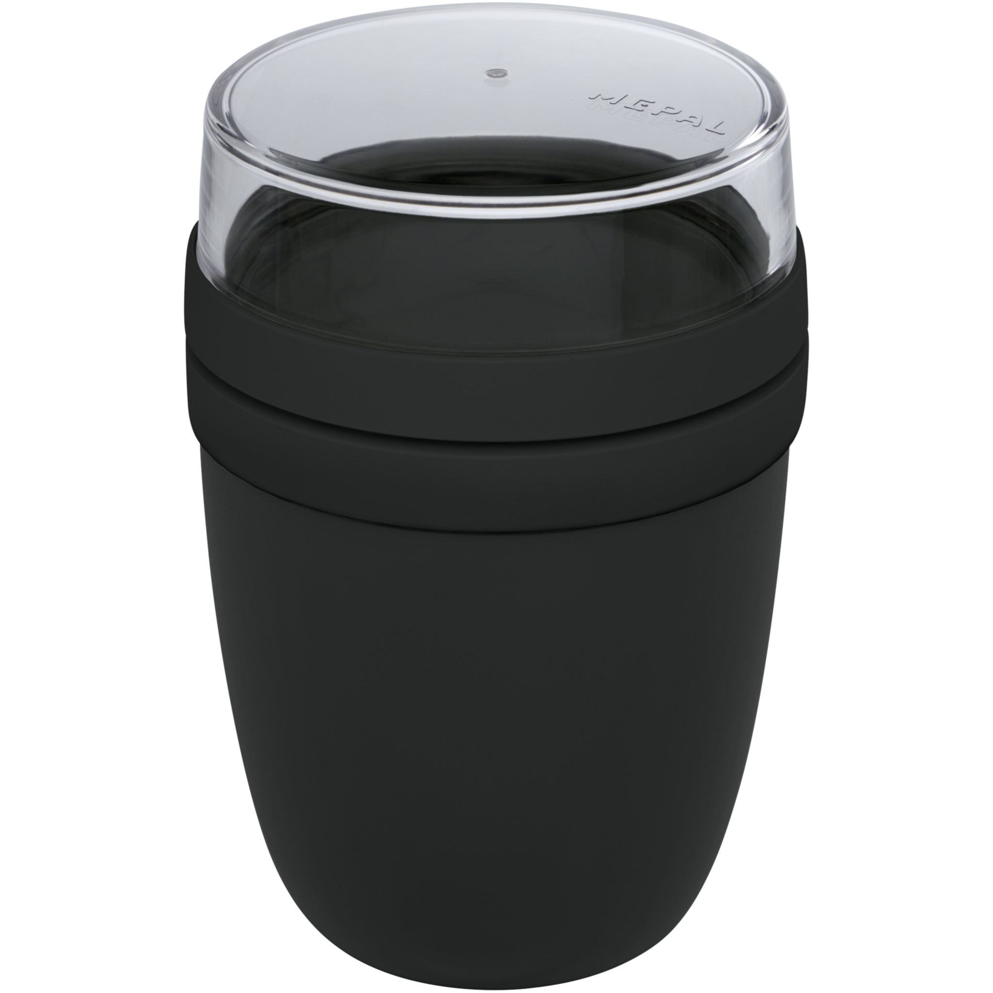 Ланч-бокс с двумя раздельными отделениями, позволяющими хранить различные продукты отдельно друг от друга. Каждое отделение закрывается отдельной крышкой, поэтому они остаются чистыми. Объем верхнего прозрачного контейнера составляет 200 мл, что соответствует примерно 75 граммами твердой пищи. Емкость нижнего контейнера составляет 500 мл. Ланч-бокс изготовлен из прочного материала, поэтому продукты в нем можно хранить в холодильнике, разогревать в микроволновой печи (сняв крышку), а сам ланч-бокс можно мыть в посудомоечной машине. Верхний прозрачный контейнер нельзя использовать в микроволновой печи. Герметичный. Без содержания БФА.