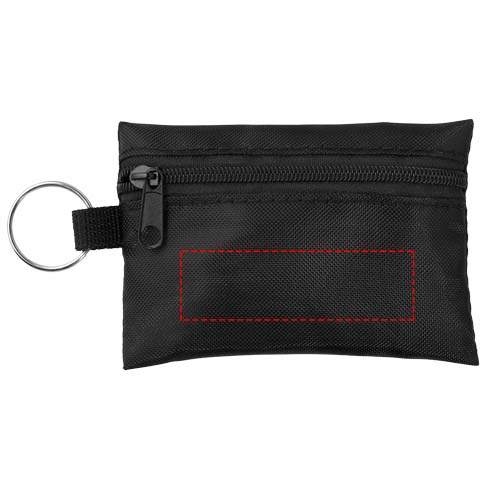 Удобная мини-аптечка с брелоком из полиэстера и 16 предметов для оказания неотложной медицинской помощи. Отлично подходит для путешествий, фестивалей, соревнований и других мероприятий на свежем воздухе. Предусмотрена большая зона для декорирования. Комплект первой медицинской помощи считается медицинским изделием и соответствует требованиям 93/42/EEC по целевому использованию: "диагностика, профилактика, мониторинг, лечение или облегчение состояния больного". Это медицинское изделие относится к I классу.