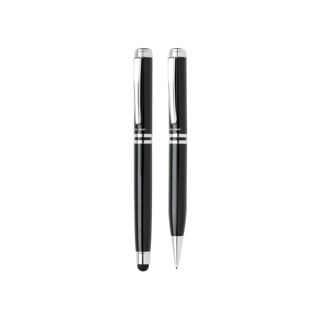 Аутентичный набор ручек, обладающий всеми признаками классического качества. Высококачественная тяжелая латунная металлическая ручка-роллер со стилусом и шариковая ручка с брендингом Swiss Peak. Включает премиальный чехол из искусственной кожи и подарочную коробку. Синие чернила.