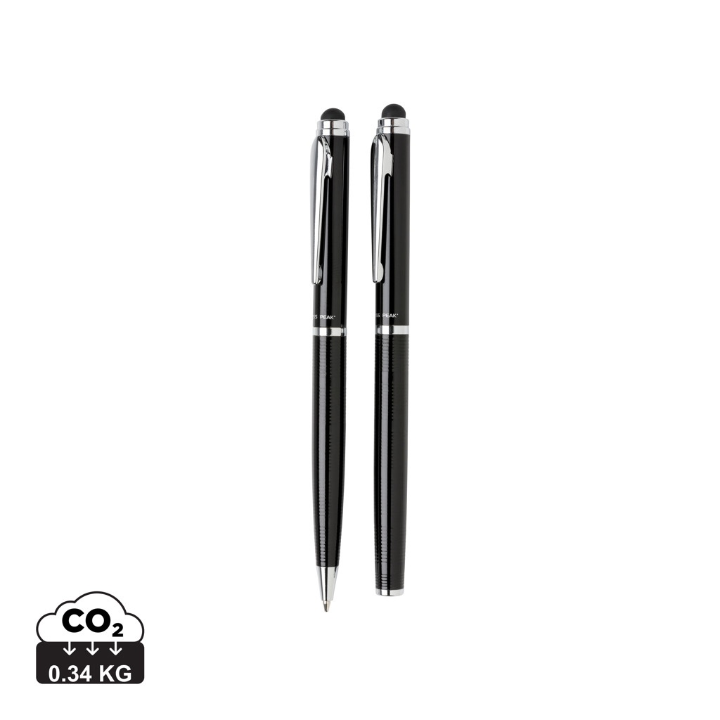 Подарочный набор из шариковой ручки-стилуса и роллера-стилуса. Эксклюзивный дизайн с красивым узором в виде линейки и выделенным местом для печати вашего украшения. Включает подарочную коробку Swiss Peak tube.