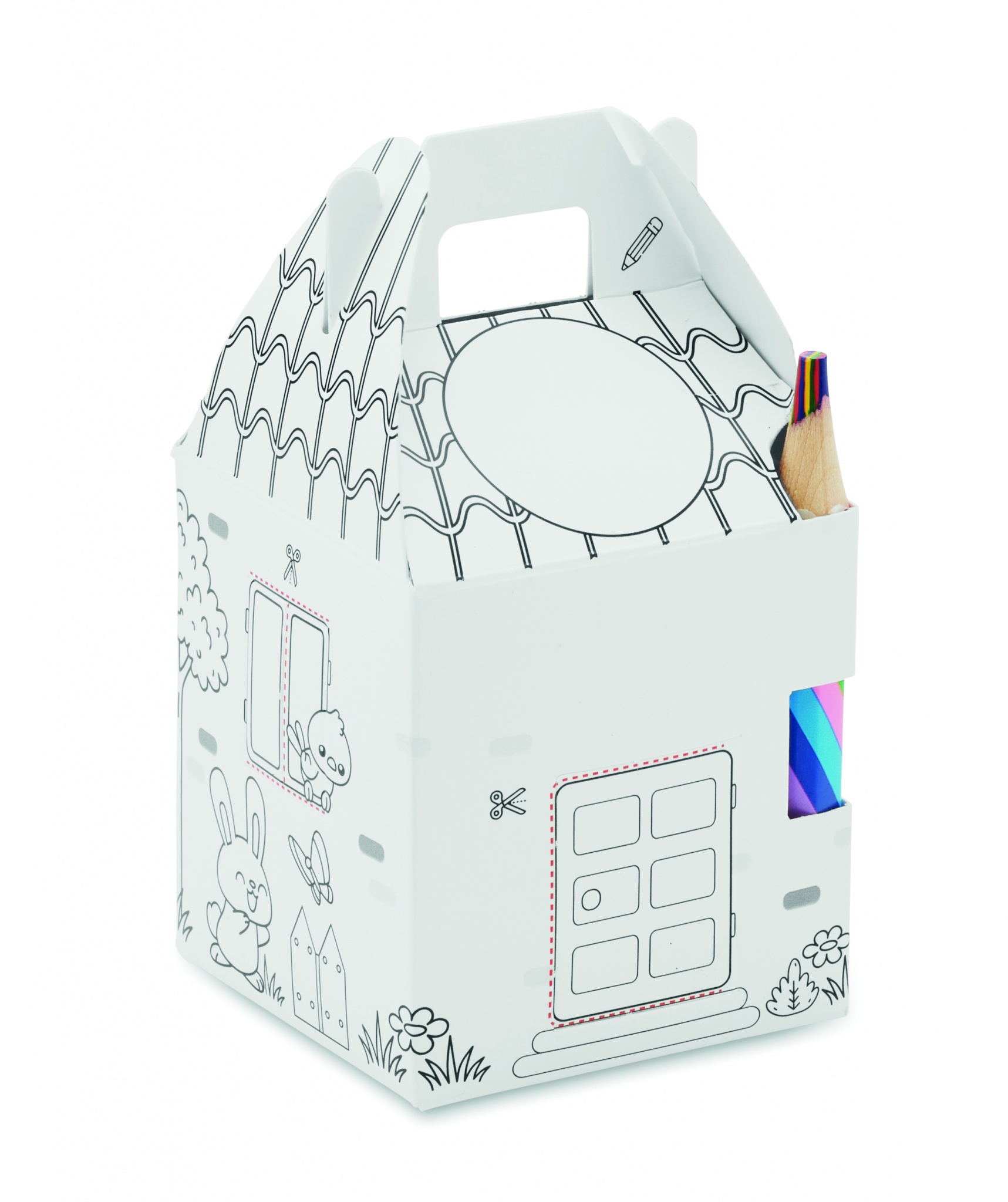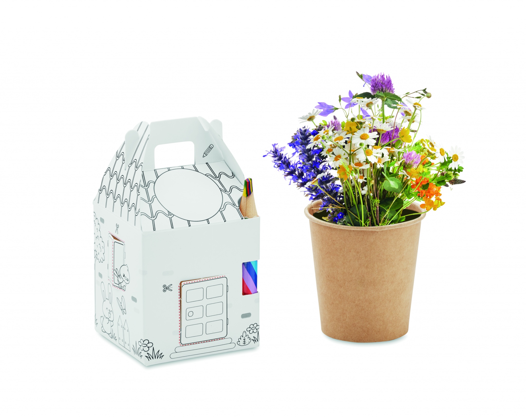 Набор для выращивания семян в форме домика. В комплект входят семена цветов и разноцветные деревянные карандаши.