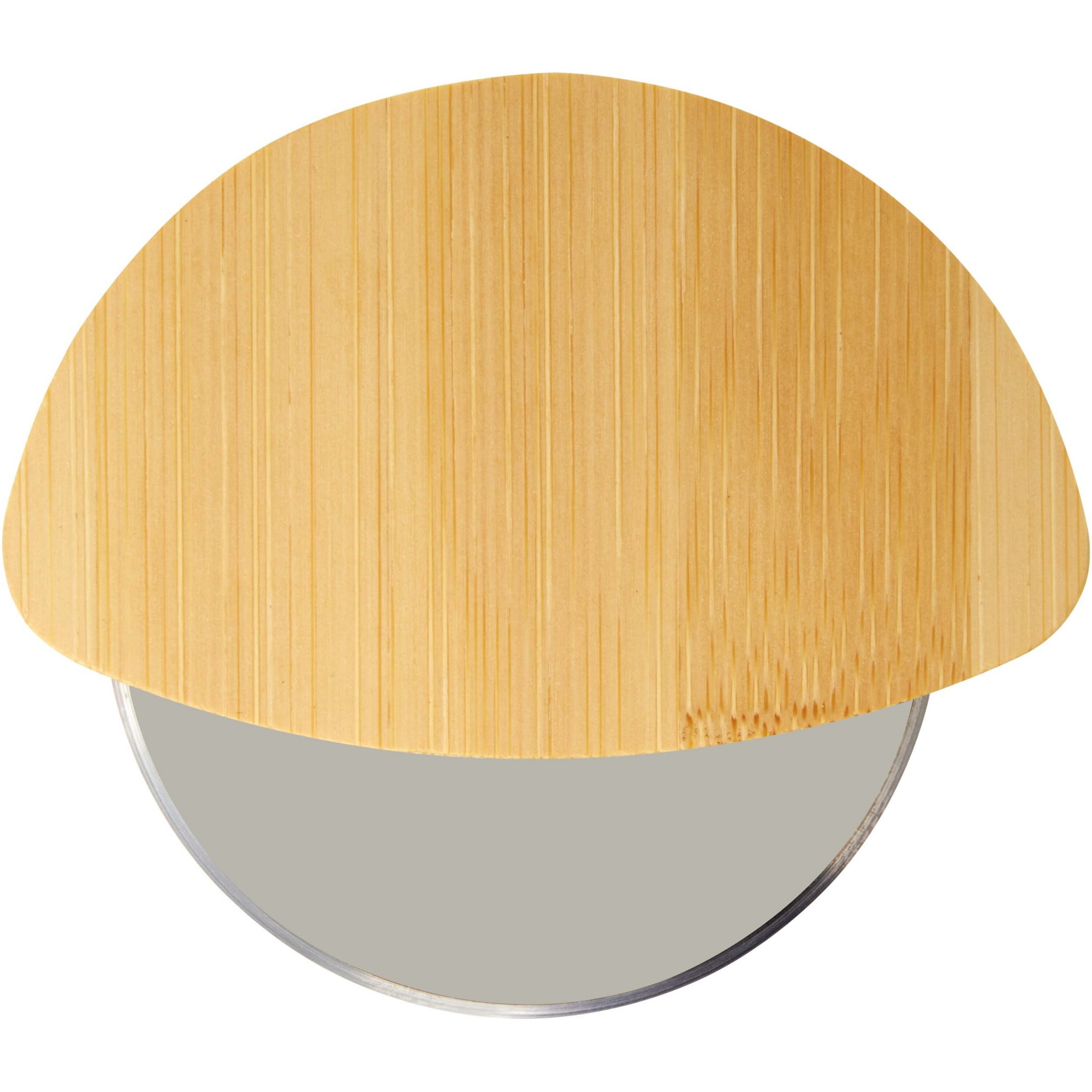 Нож для пиццы с бамбуковой ручкой и лезвием из нержавеющей стали.