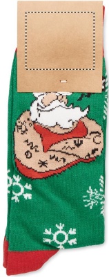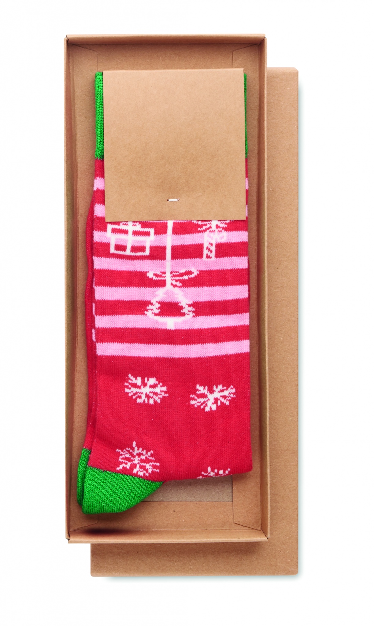 Пара тематических носков из 75% хлопка, 23% переработанного полиэстера RPET и 2% спандекса. Поставляются в подарочной упаковке. Размер L = 43-46.