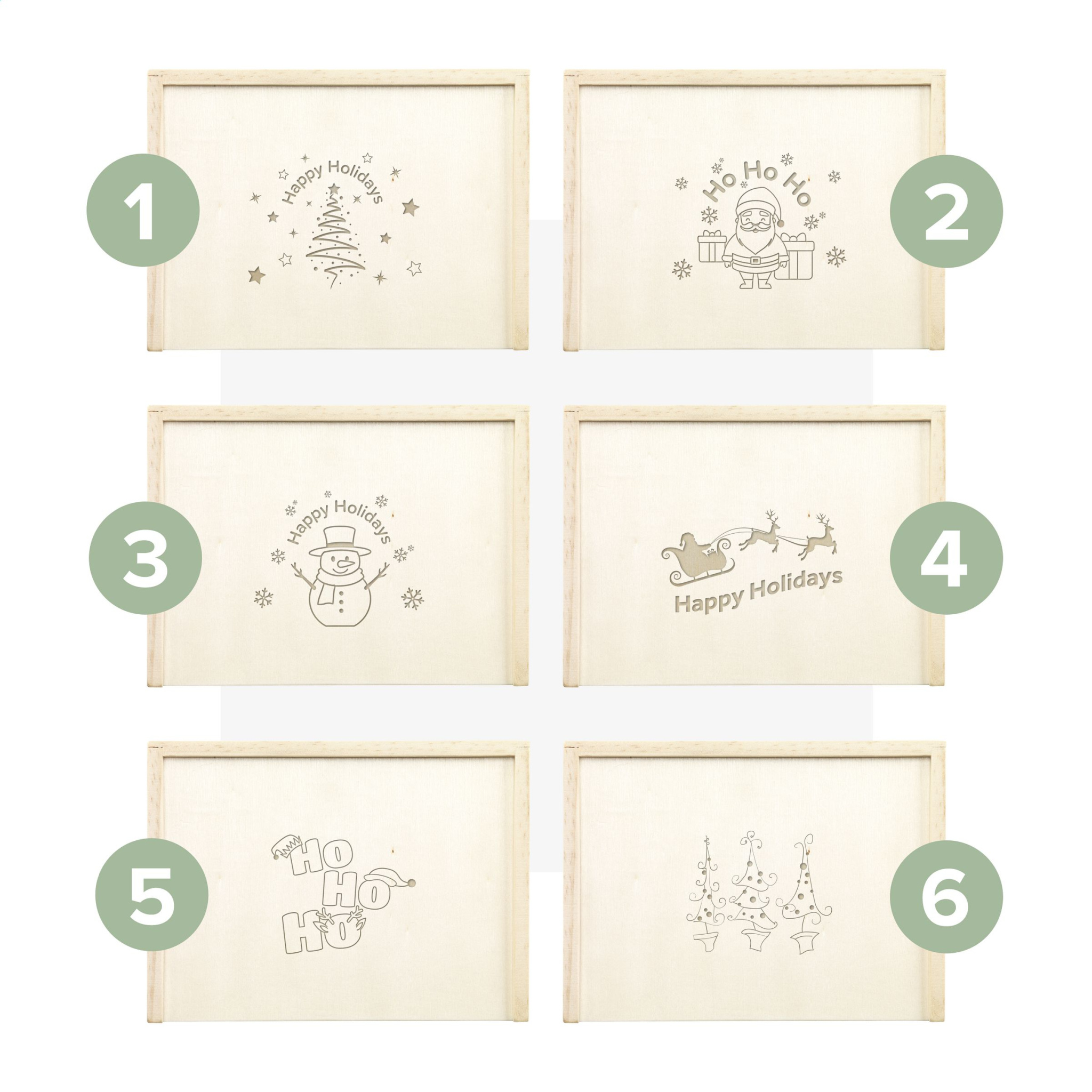 WoW! Две колоды игральных карт, изготовленные из высококачественной переработанной крафт-бумаги (250 г/м²). Эта игра состоит из 52 игральных карт и 2 джокеров. Хранится в коробке из переработанного картона. На обороте всех этих карт одно и то же стандартное изображение. Эти колоды карт поставляются в коробке для хранения из сосны с выдвижной крышкой. - Этот продукт напечатан со стандартным рождественским дизайном. Выбор из 6 различных дизайнов, как показано на изображениях. Невозможно настроить дизайн.