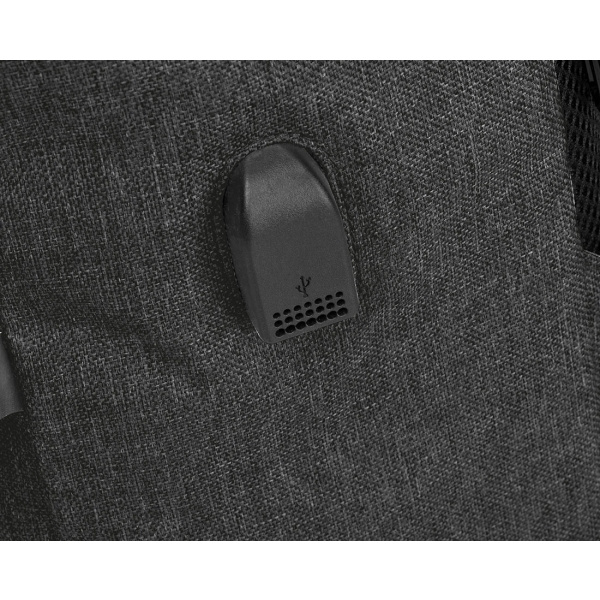 Рюкзак из rPET с USB-портом, мягкими ремнями, отделением для ноутбука, передним отделением и отделением против кражи. Мы напечатаем ваш логотип на переднем отделении.