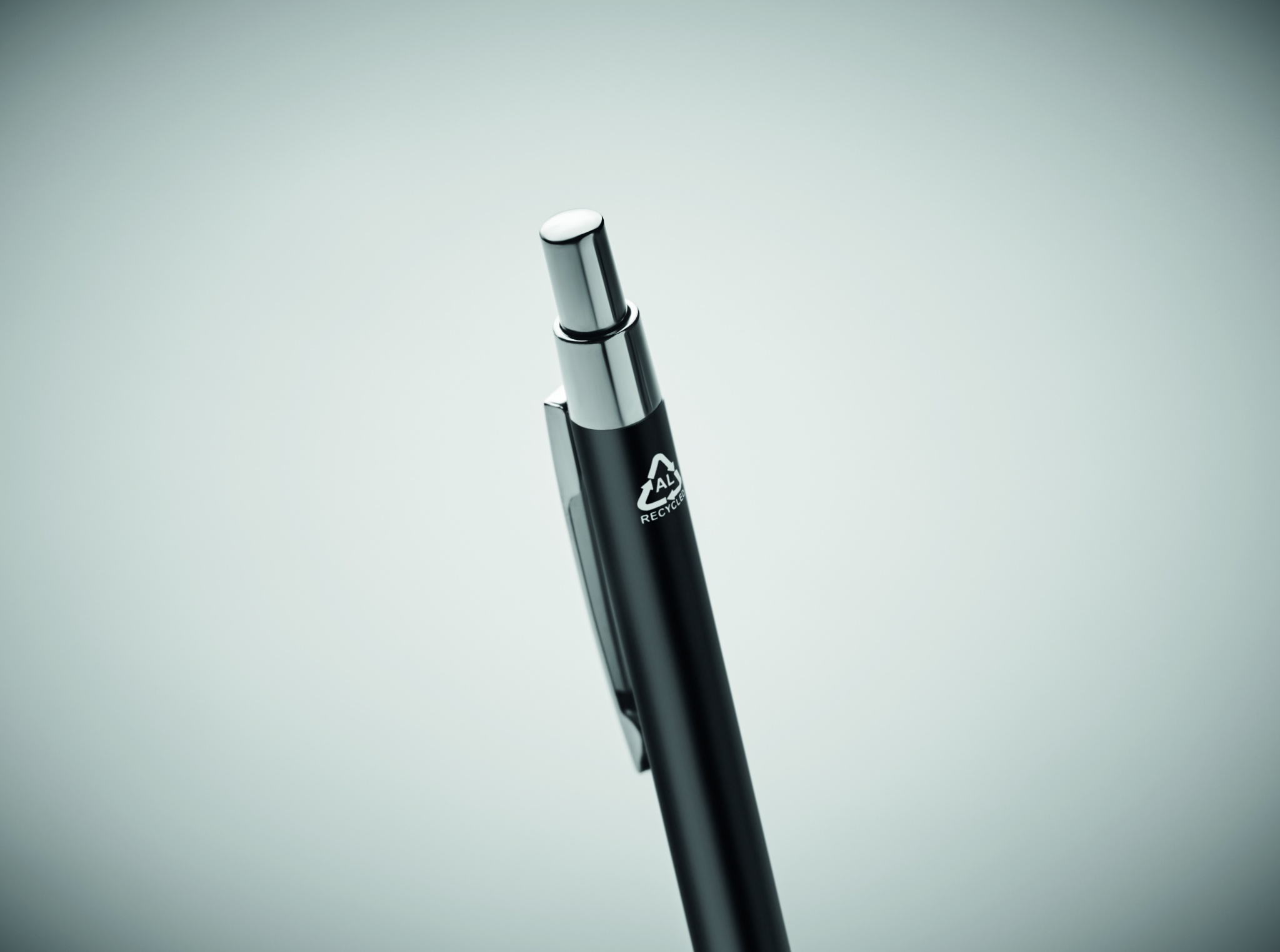 Кнопочная шариковая ручка из переработанного алюминия. Синие чернила.