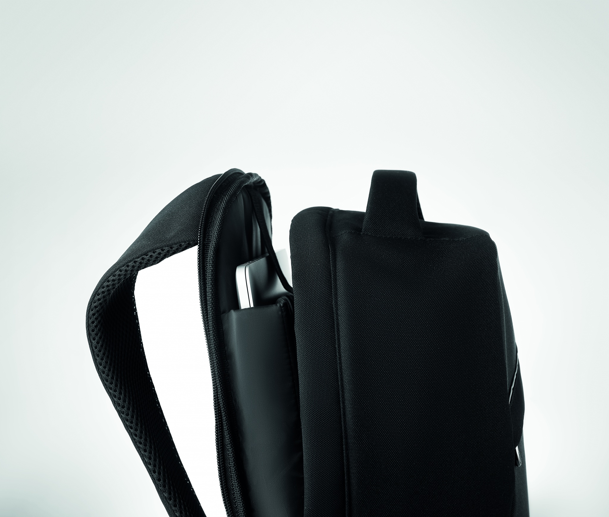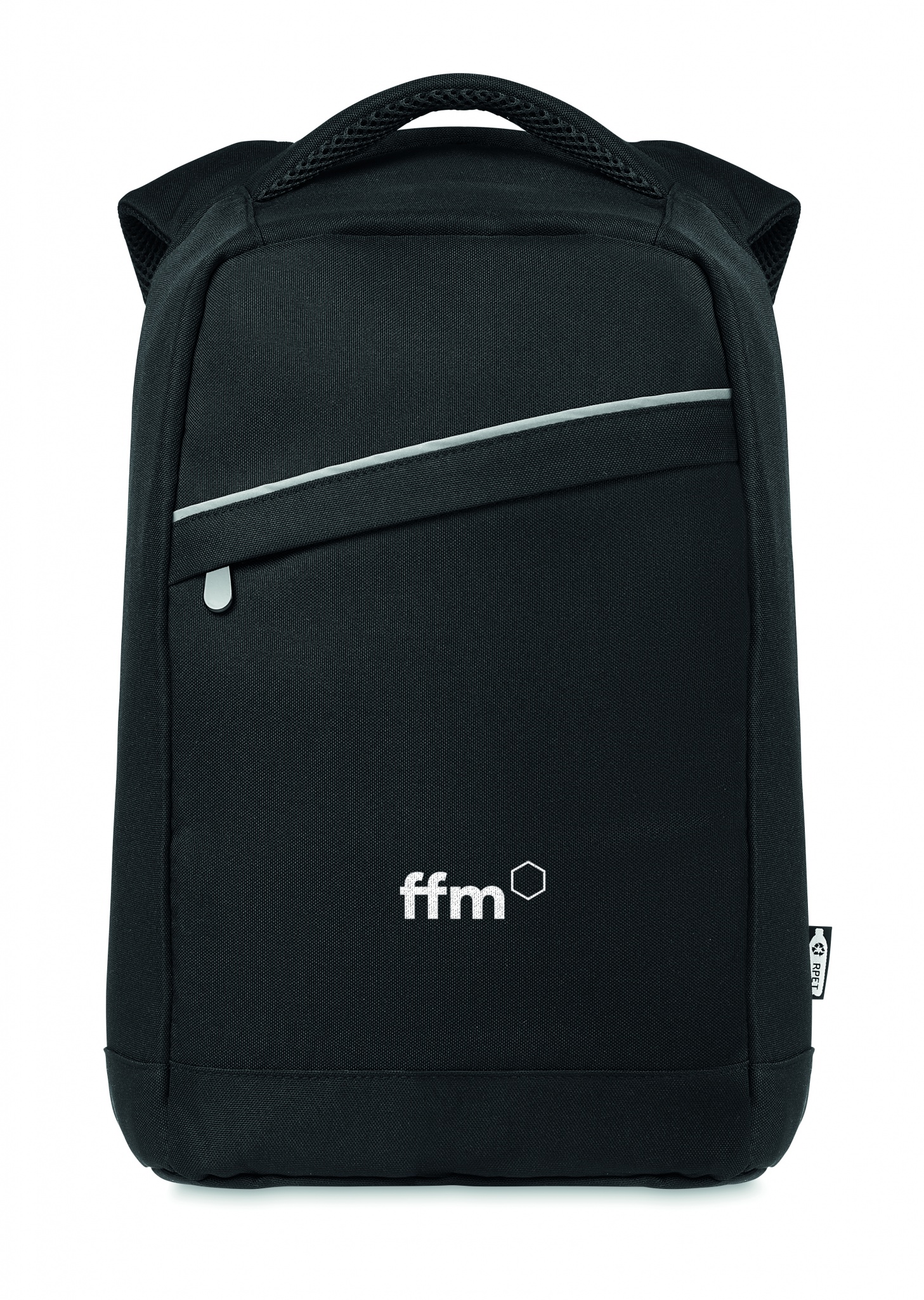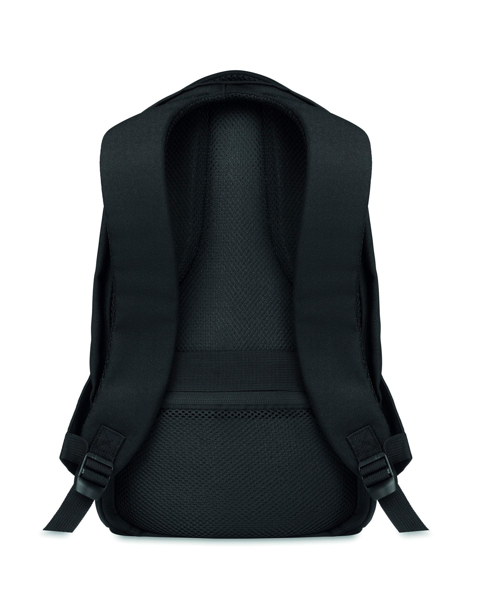 Рюкзак 600D RPET с мягким плечевым ремнем и большим внутренним отделением. Внутри только отделение для ноутбука 13 дюймов. Закрывается на молнию со спины для большей безопасности.