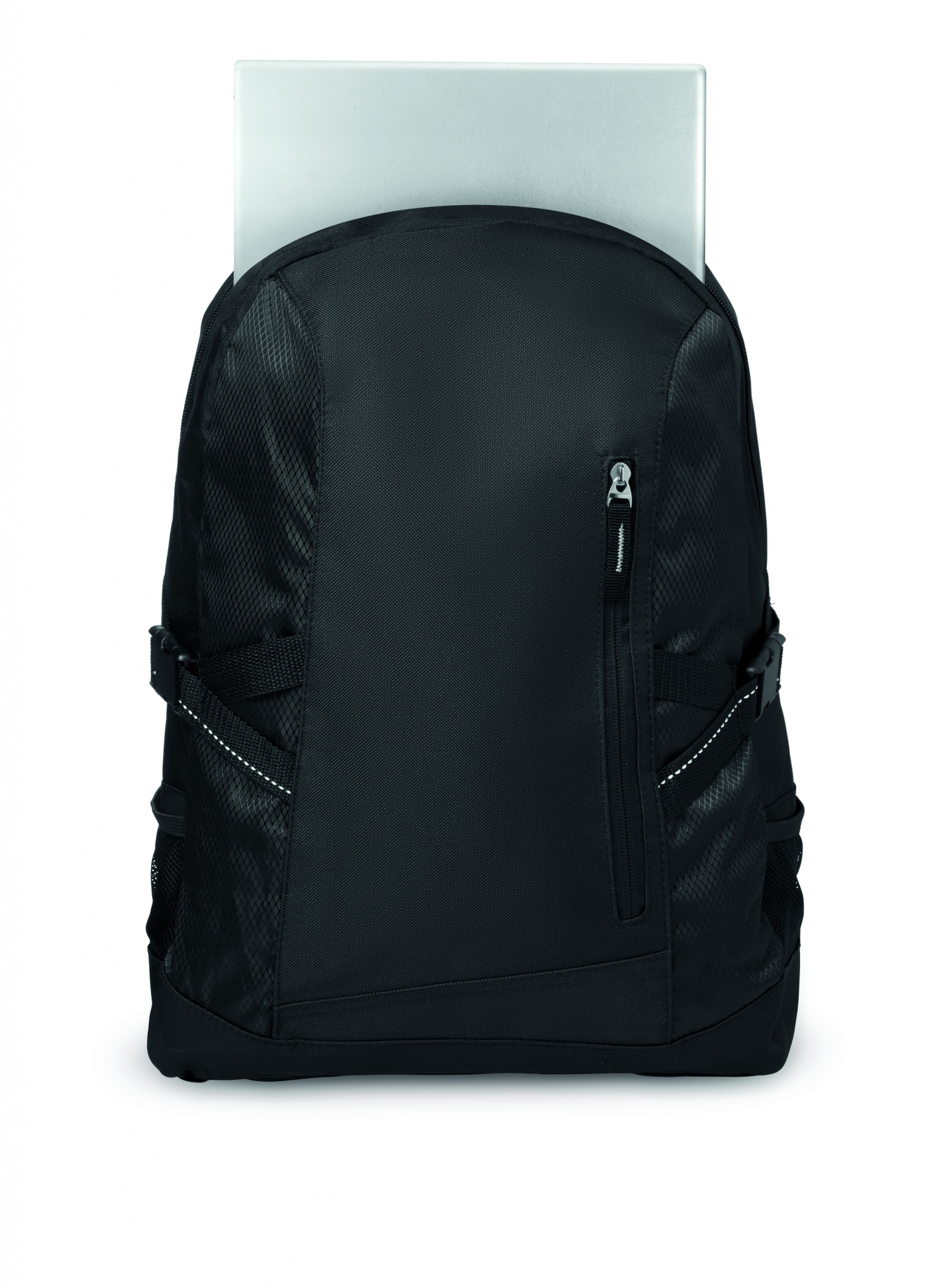 "Рюкзак для ноутбука размером 15"" выполнен из полиэстера плотностью 600D. Наружный карман на молнии, два боковых отсека. Регулируемый плечевой ремень."