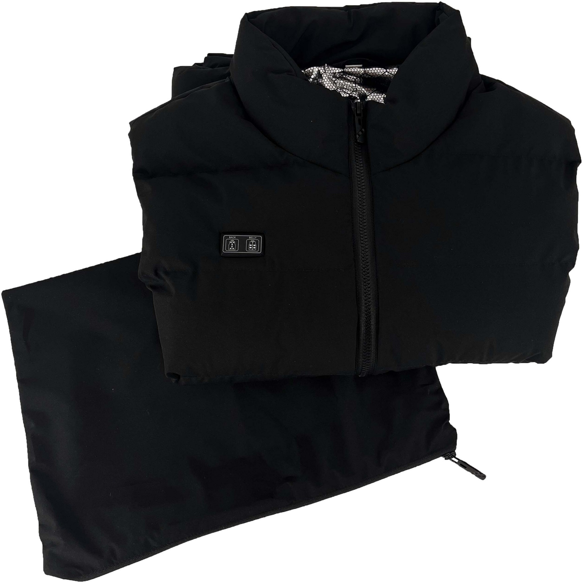 Инновационный универсальный ветрозащитный жилет равномерно согревает благодаря 11 нагревательным накладкам, расположенным спереди, сзади и сверху жилета. Доступны три уровня температуры (низкий, средний и высокий). Доступны четыре различных размера: S-M (длина 58 см х грудь 48 см), M-L (длина 64 см х грудь 54 см) и L-XL (длина 66 см х грудь 60 см), XXL-XXL (длина 74 х грудь 66 см). Жилет был разработан с боковыми молниями, благодаря чему он идеально подходит для любой формы тела и для людей, которые хотят сохранить свободу движения в холодную погоду. Портативное зарядное устройство на 10 000 мА·ч входит в комплект поставки и уже подключено для удобства использования. Упаковывается в пакет из ТПУ (38 x 30 см).