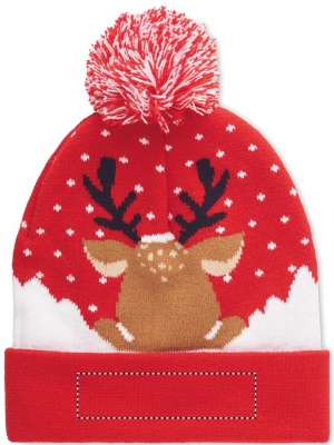 Рождественская вязаная шапка с 6 светодиодными лампочками (3 настройки света), манжетой и помпоном из мягкого акрила. 1 батарейка CR2032 в комплекте.