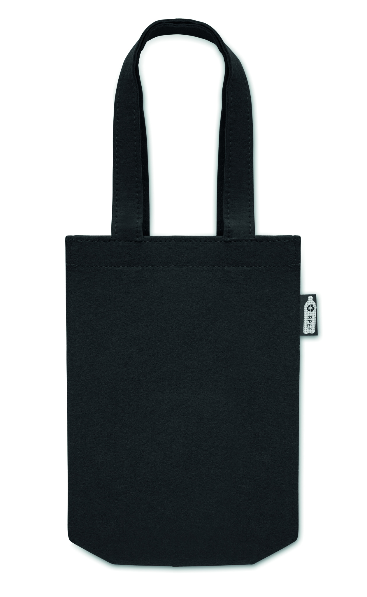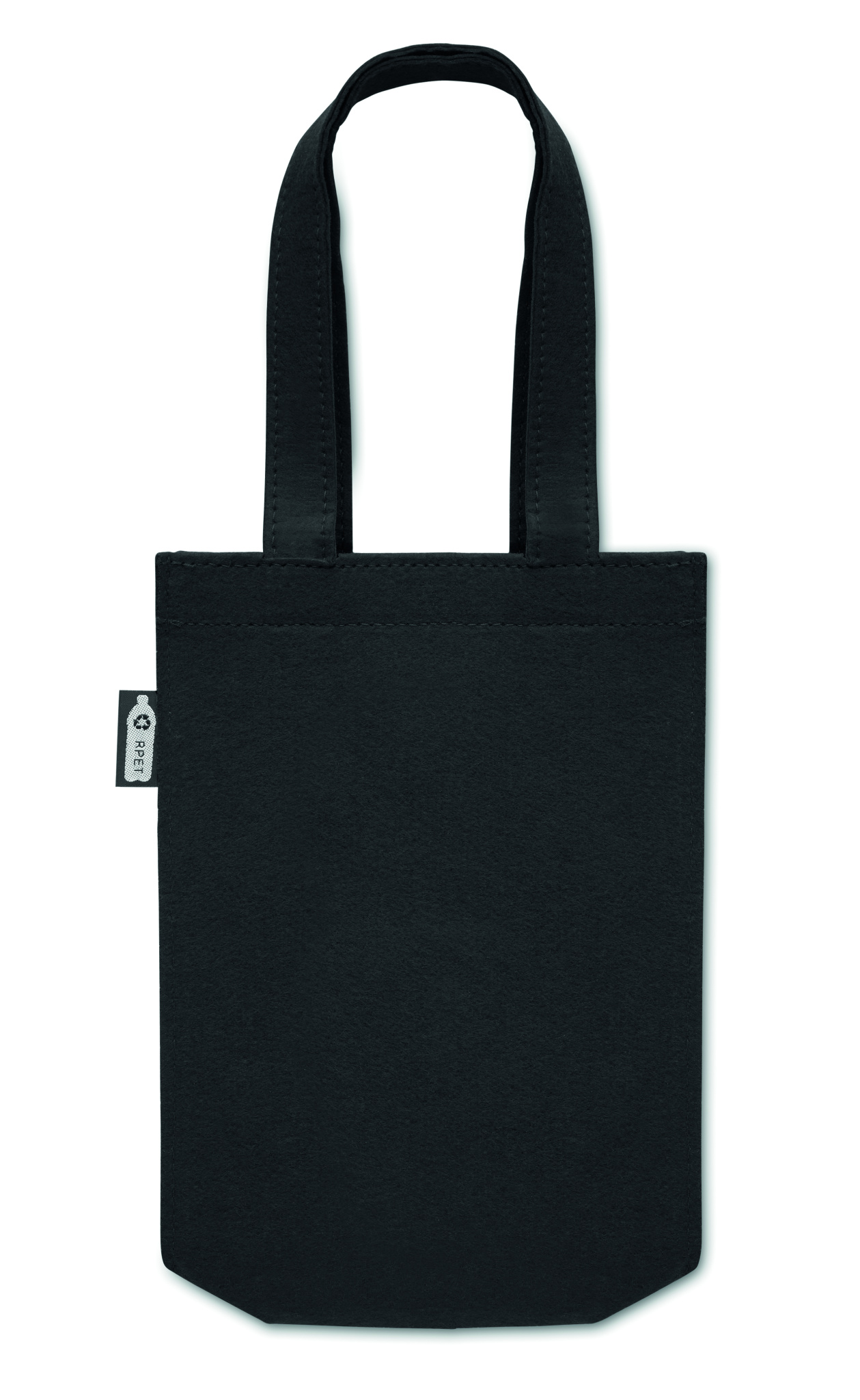 Small RPET felt gift or goodie bag with short handles and bottom gussets. Felt thickness: 1 mm.