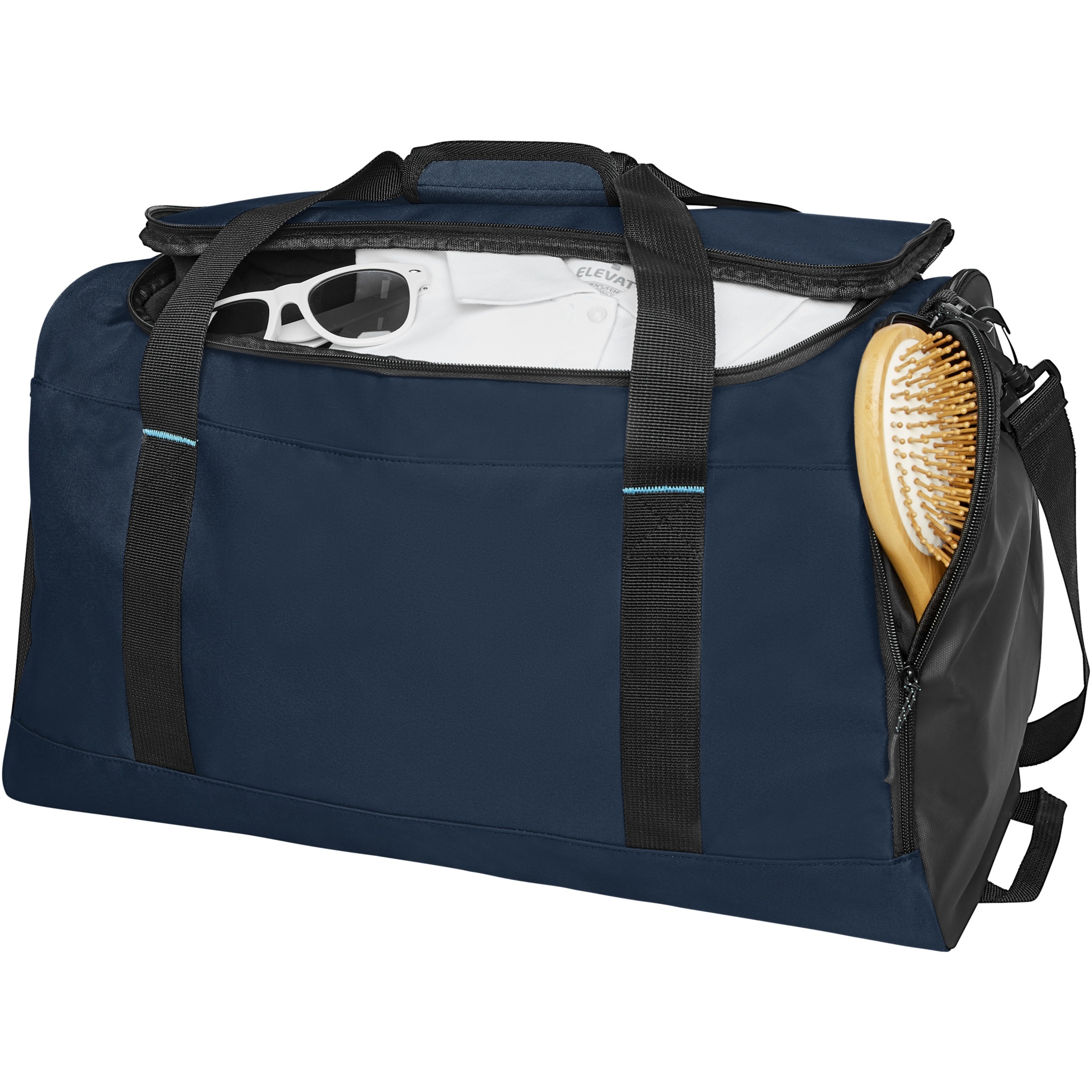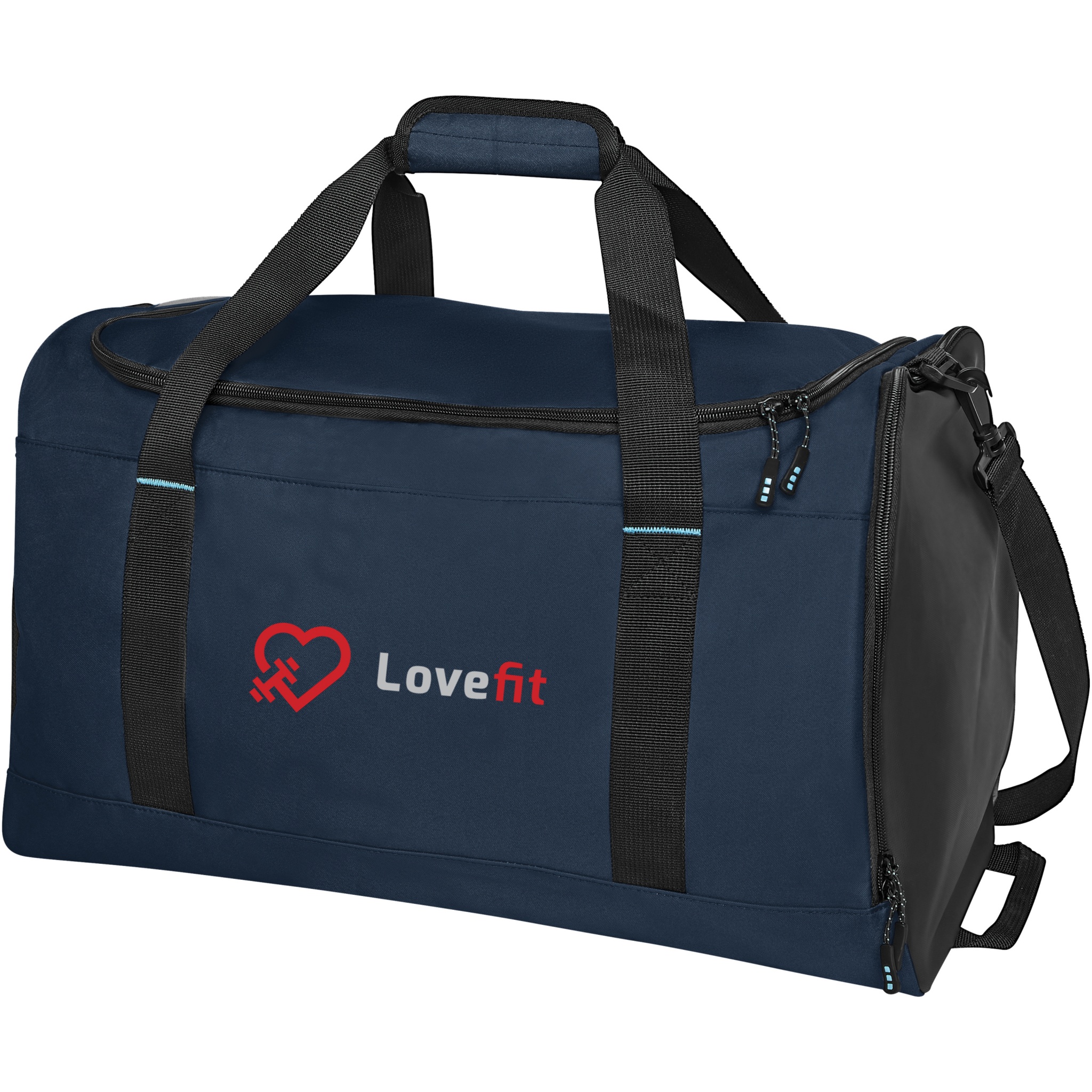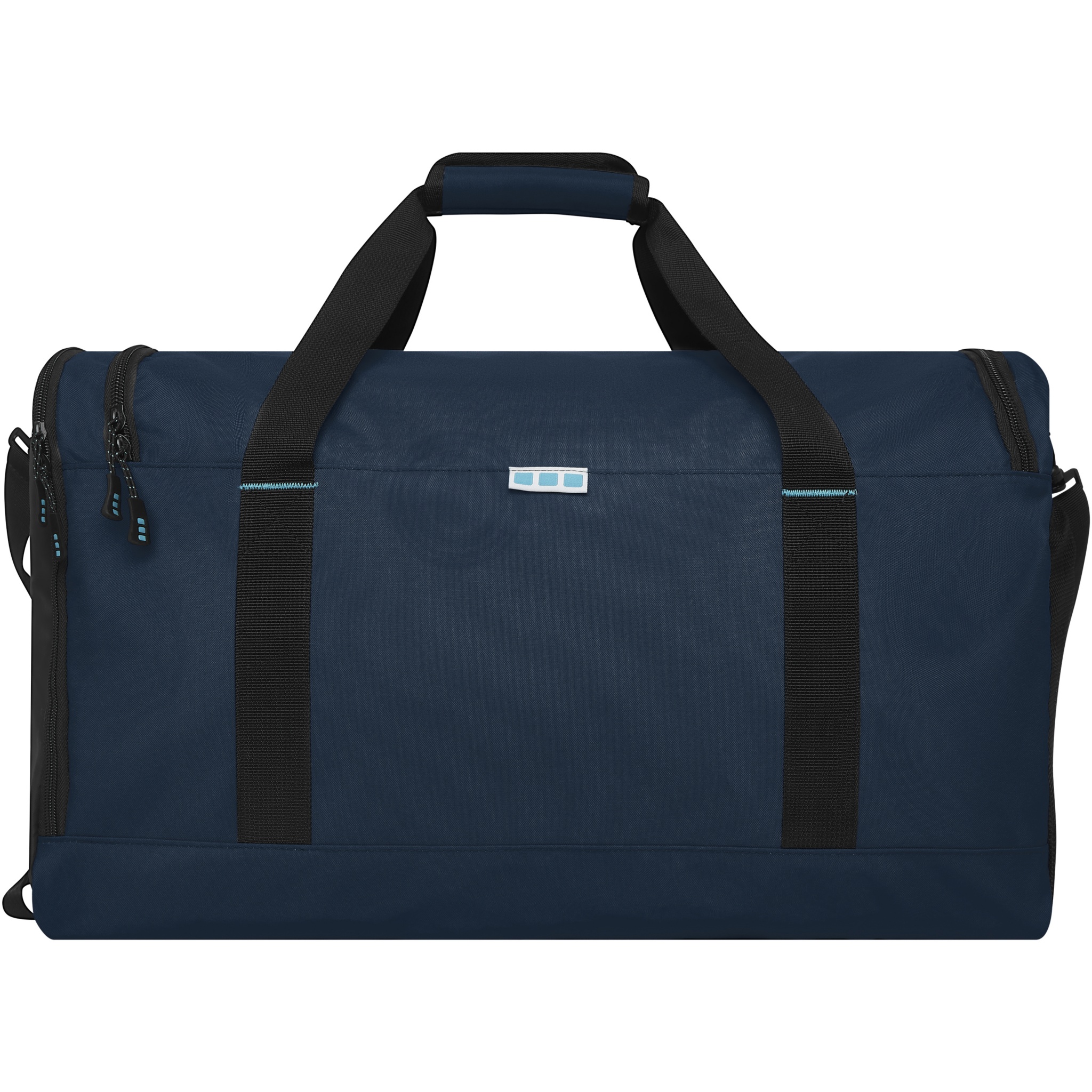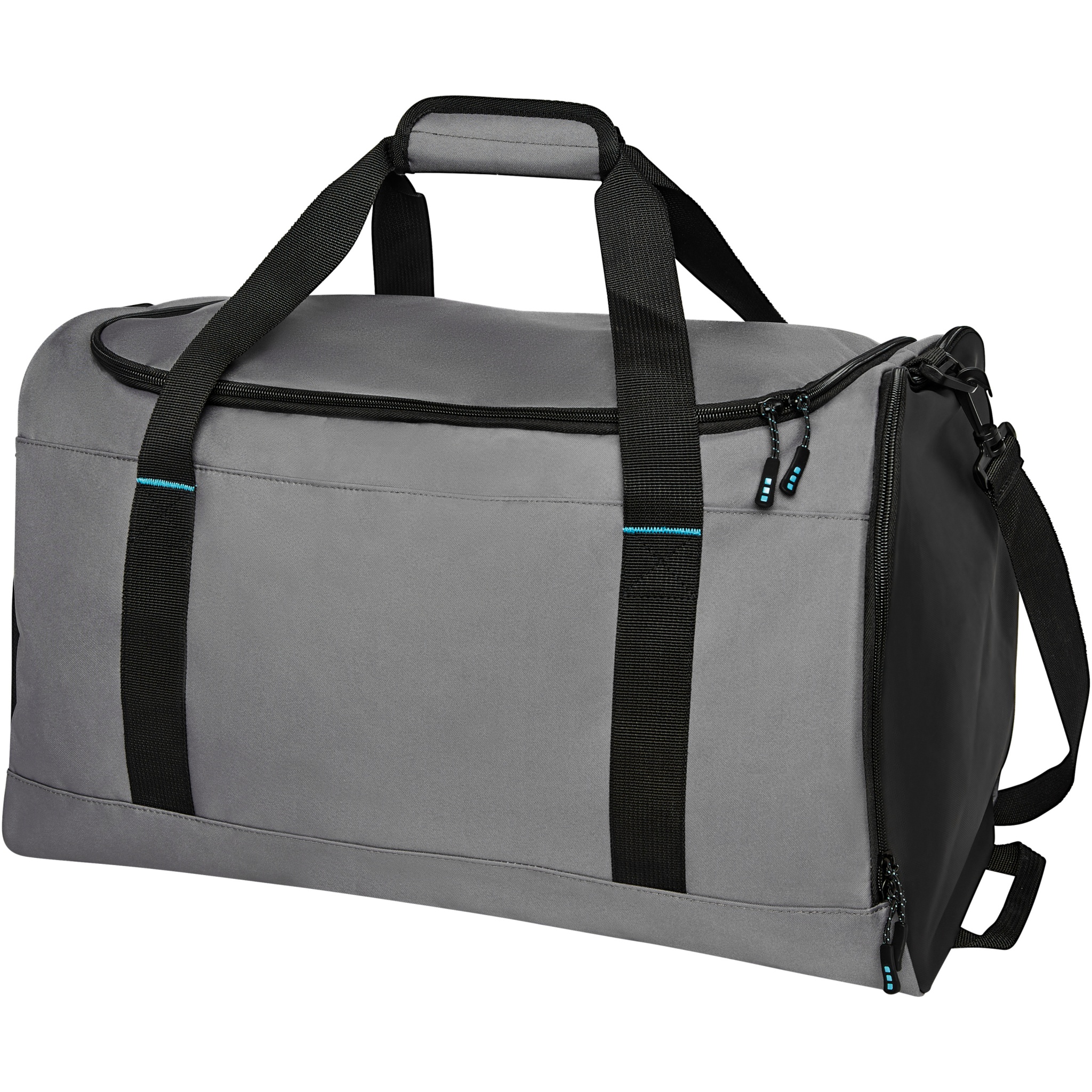 Спортивная сумка, изготовленная на 55 % из переработанных материалов и ПЭТ, сертифицированного по GRS. Имеет большое основное отделение на молнии, усиленную основную панель, сетчатый боковой карман и расширяющийся карман для влажных/сухих вещей с застежкой на молнии. Поставляется с небольшим внутренним карманом-органайзером на молнии, съемным наплечным ремнем со смягчающей прокладкой, ручками с мягкой застежкой-липучкой и дополнительной ручкой на нижней части с правой стороны.