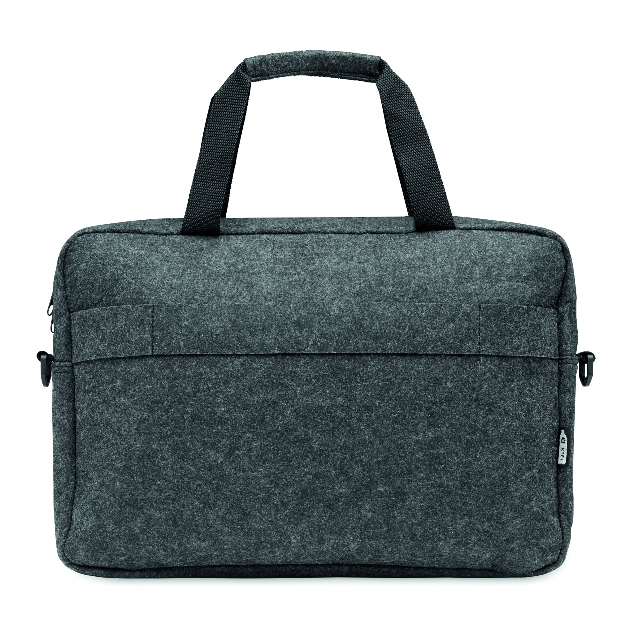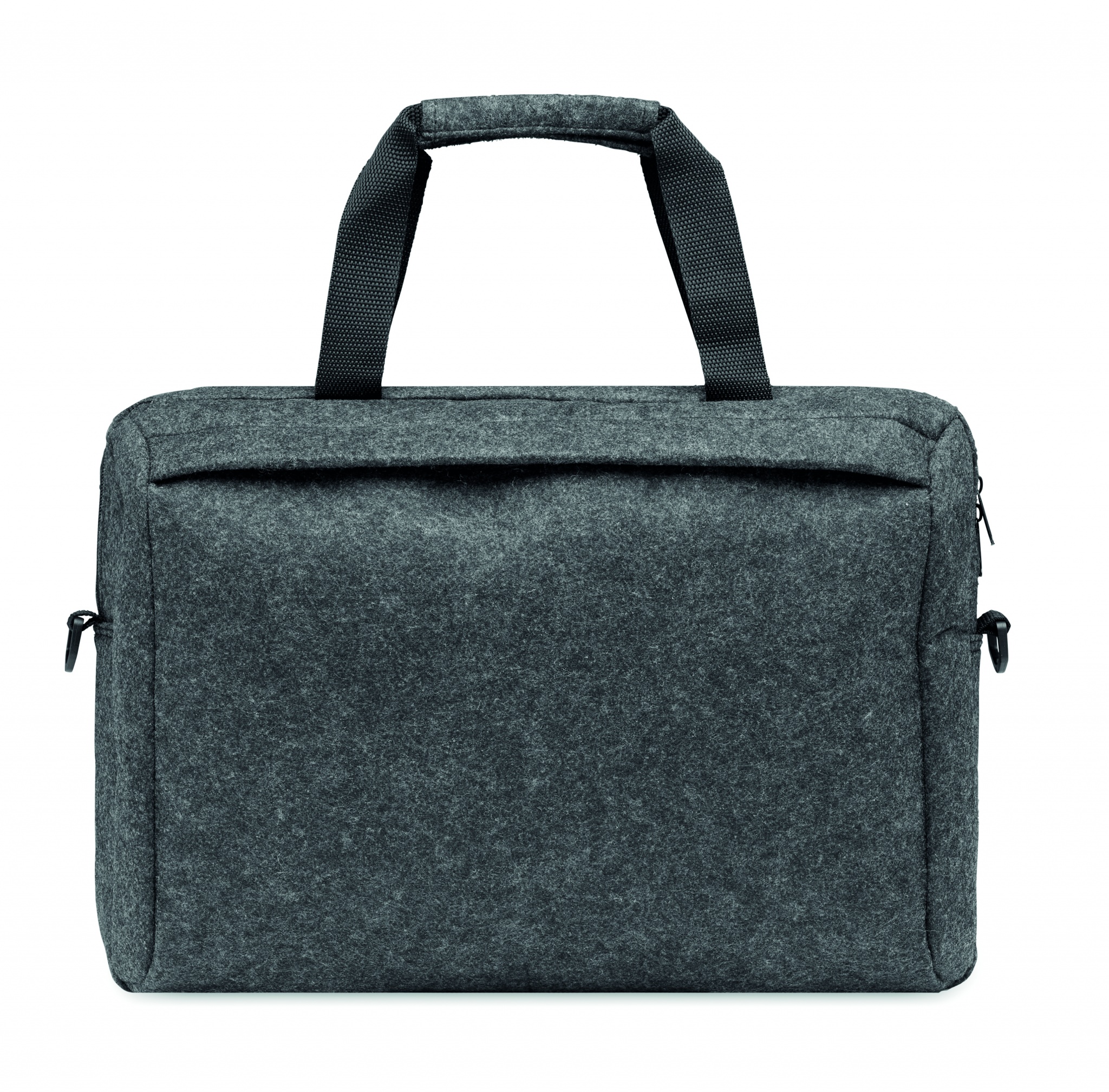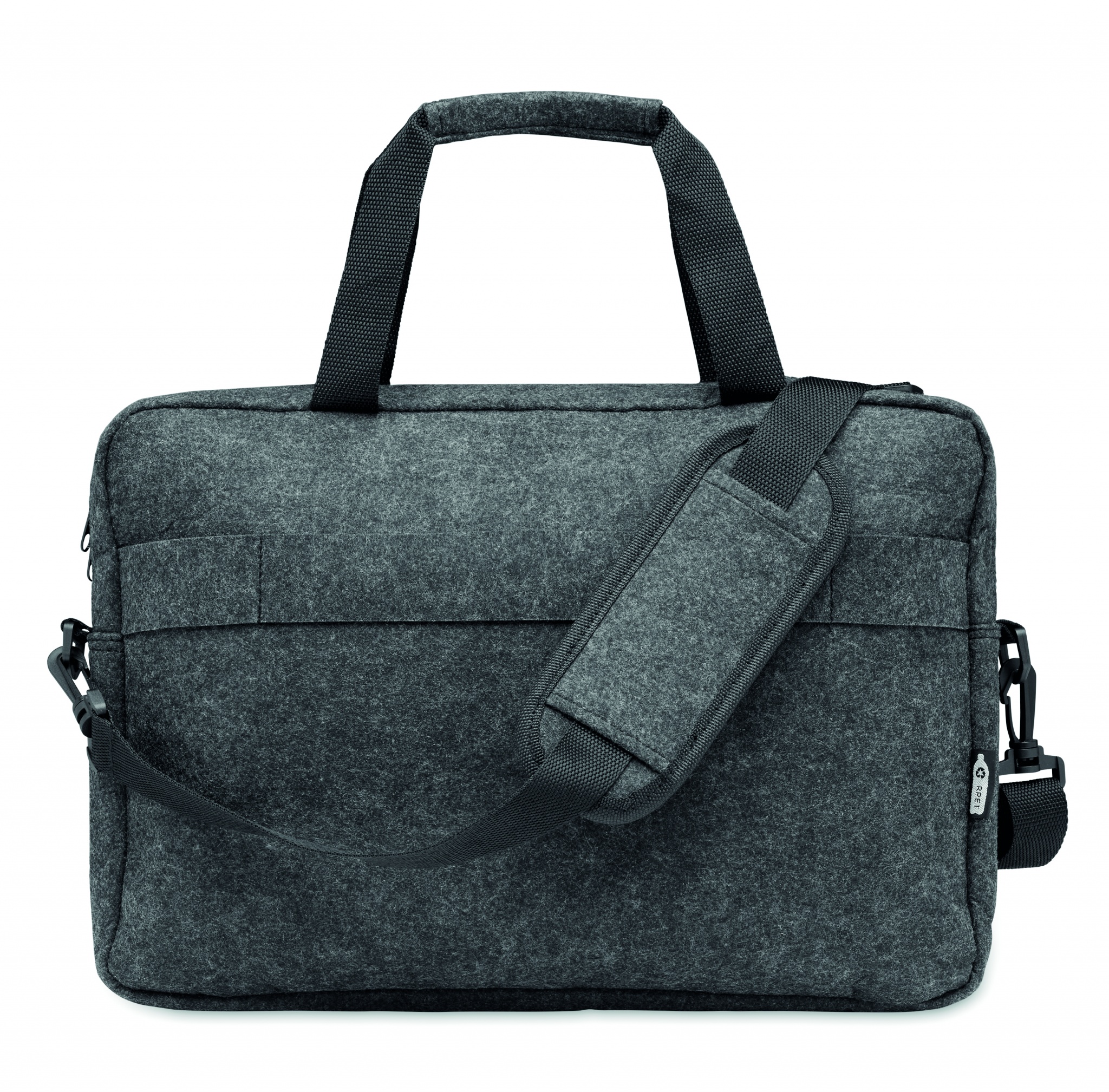 Сумка для ноутбука 15 дюймов из переработанного войлока RPET с одним основным отделением и одним передним карманом на молнии. Съемный регулируемый плечевой ремень. Ремень для крепления на чемодане.