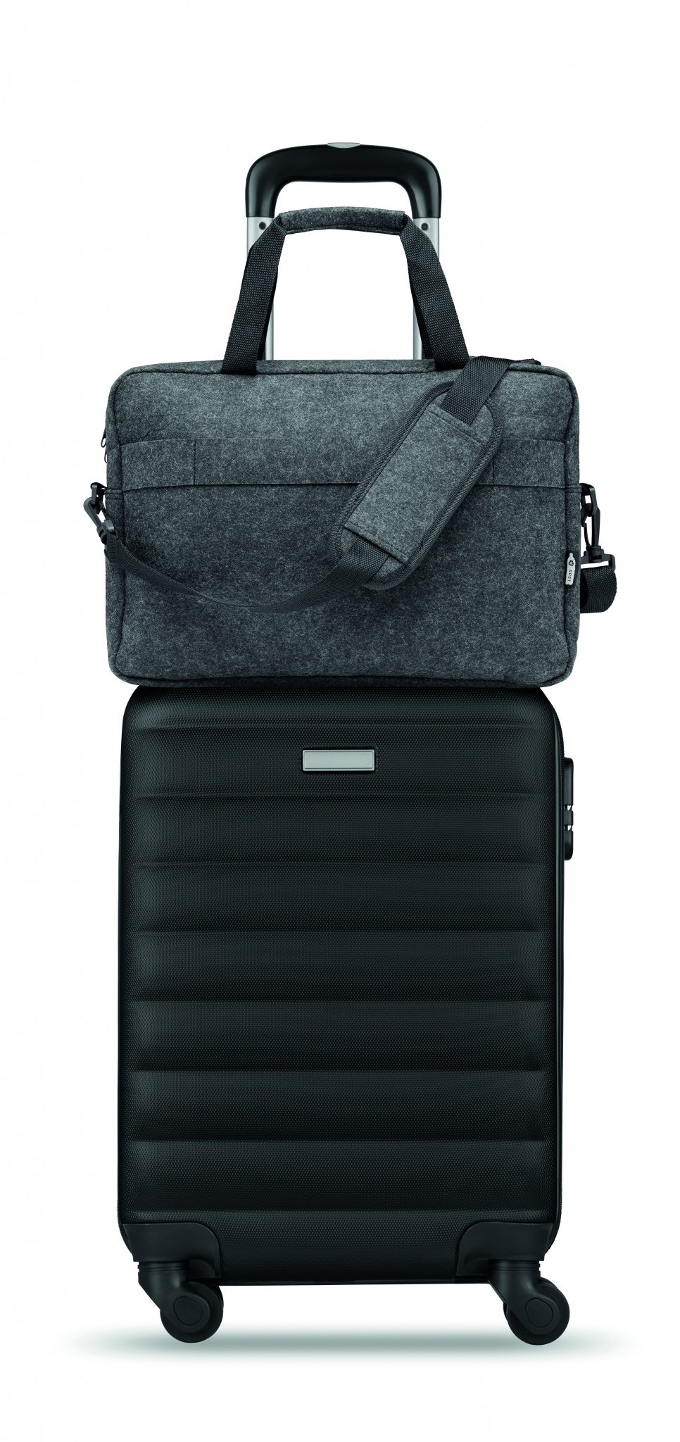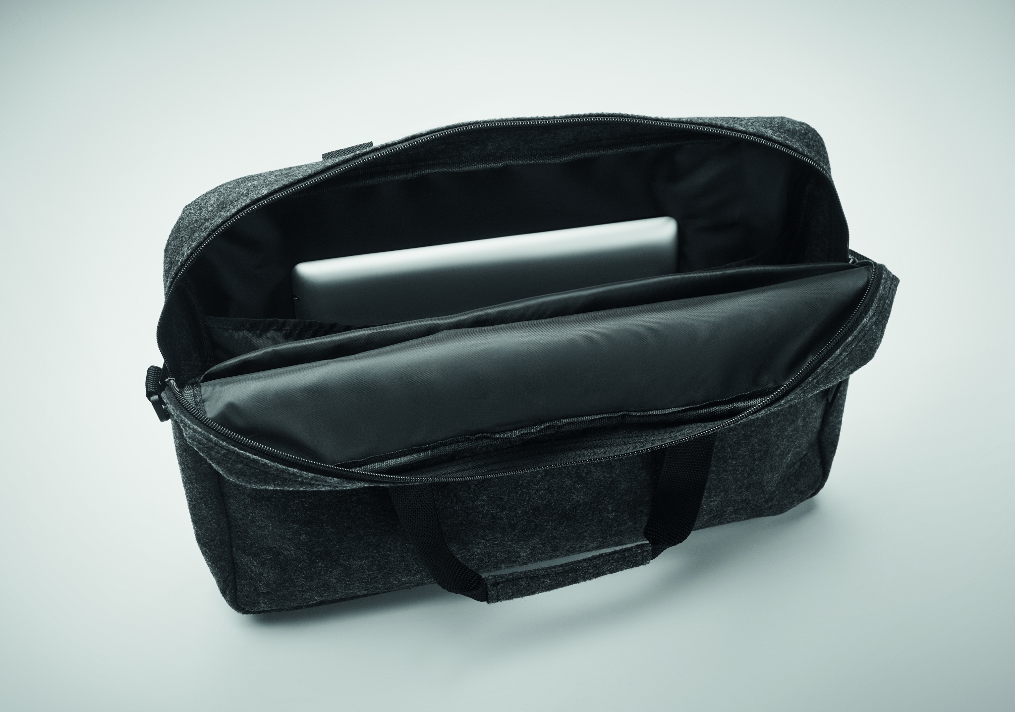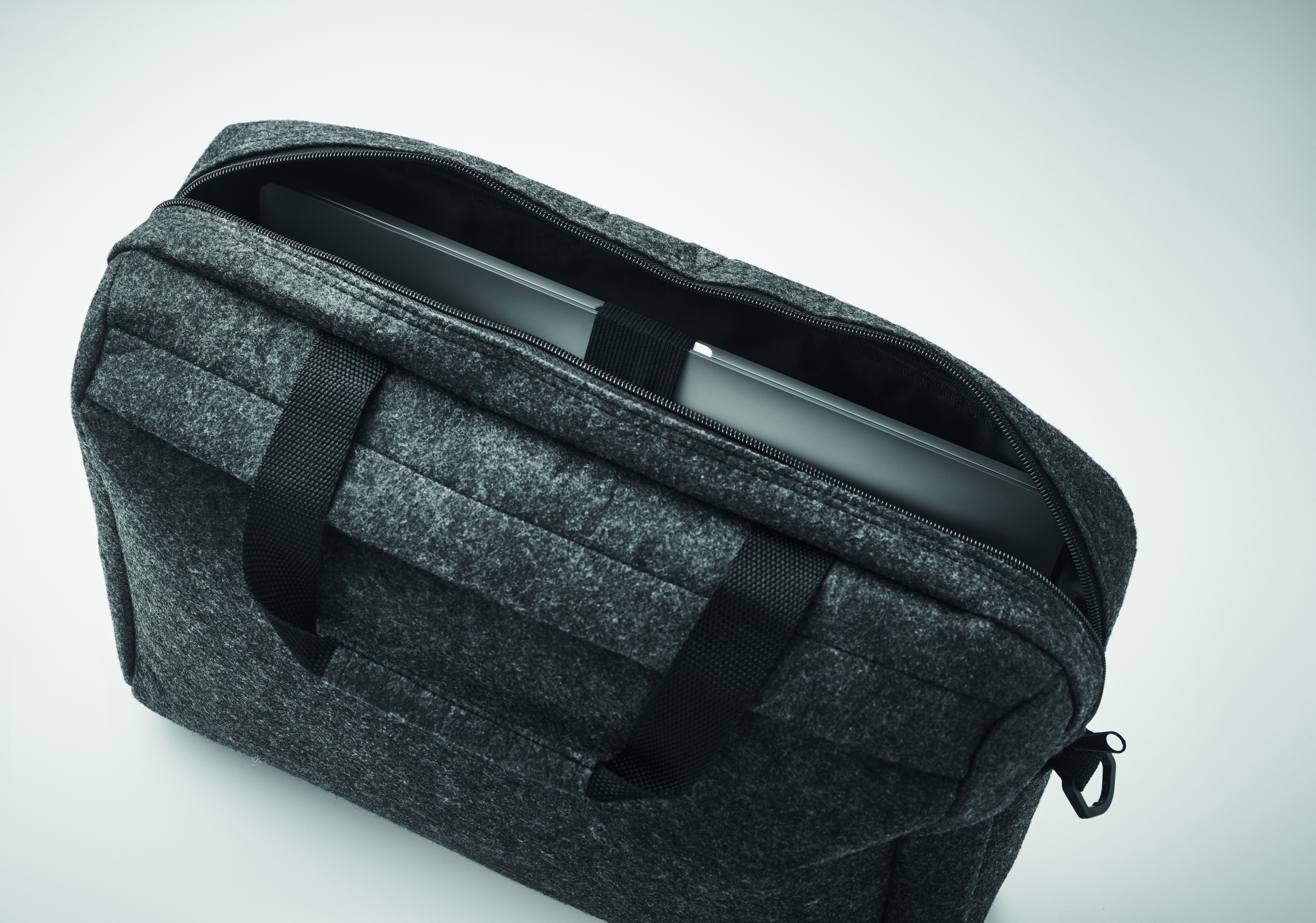 Сумка для ноутбука 15 дюймов из переработанного войлока RPET с одним основным отделением и одним передним карманом на молнии. Съемный регулируемый плечевой ремень. Ремень для крепления на чемодане.