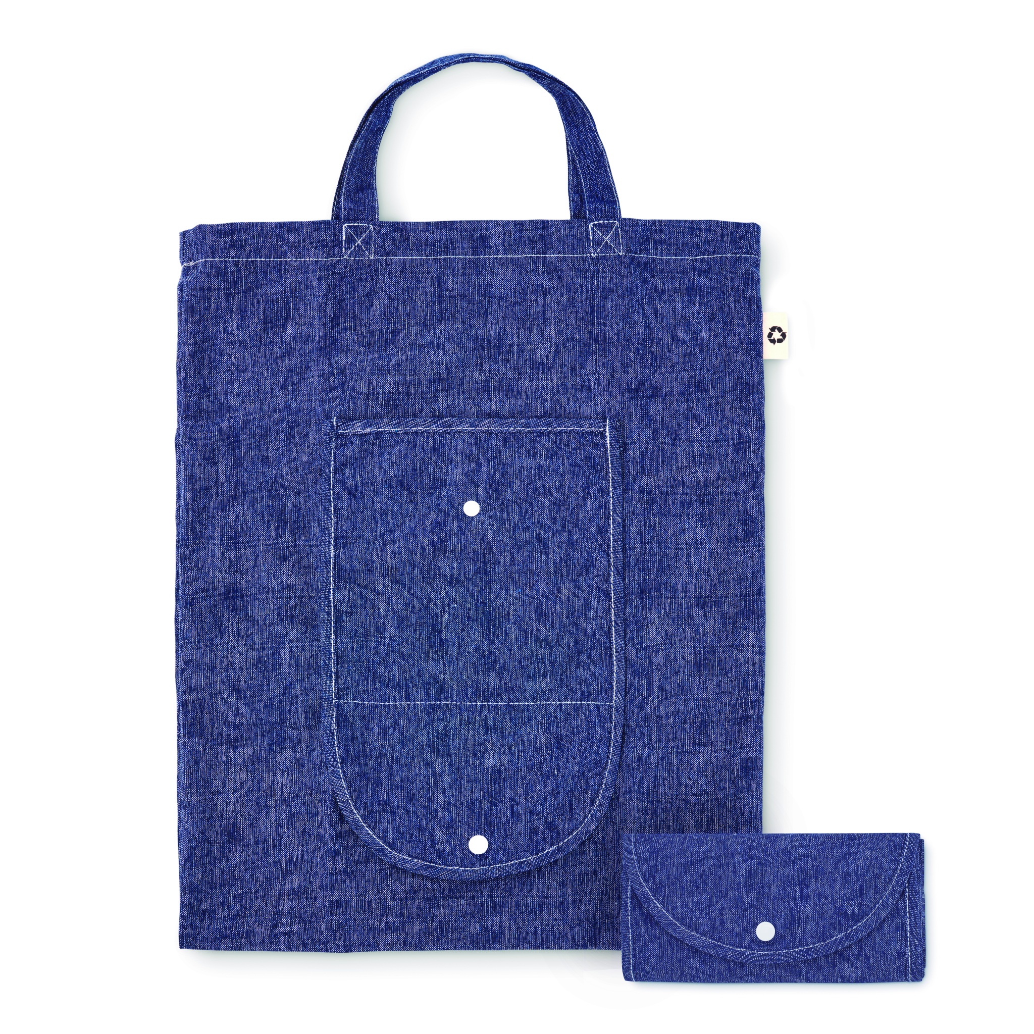 Складная двухцветная сумка для покупок из переработанного хлопка и переработанного полиэстера с длинными ручками. Приблизительно 140 гр/м². Возможна усадка после нанесения.