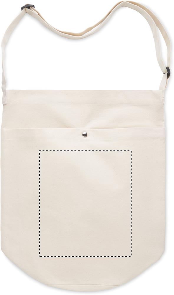 Холщовая сумка на длинном регулируемом плечевом ремне с большим передним карманом на застежке. Есть внутренний карман. 270 гр/м².