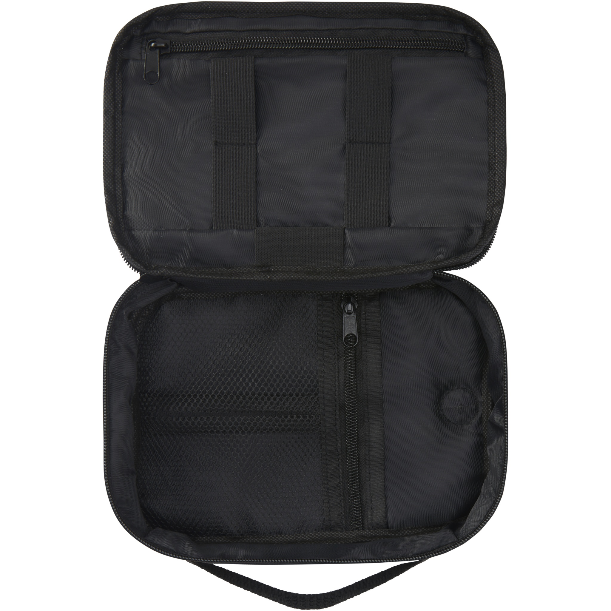 Сумка для техники Ross из переработанного ПЭТ, соответствующего стандарту GRS, идеально подходит для людей, постоянно находящихся в пути, и позволяет организовывать портативные зарядные устройства, зарядные кабели или любые другие электронные аксессуары. Имеет несколько карманов, эластичных петель и вставок для протягивания кабелей, позволяющих заряжать телефон, храня портативное зарядное устройство в сумке. Также имеет пластиковый карабин для крепления к другой сумке. Емкость: 1 литров.
