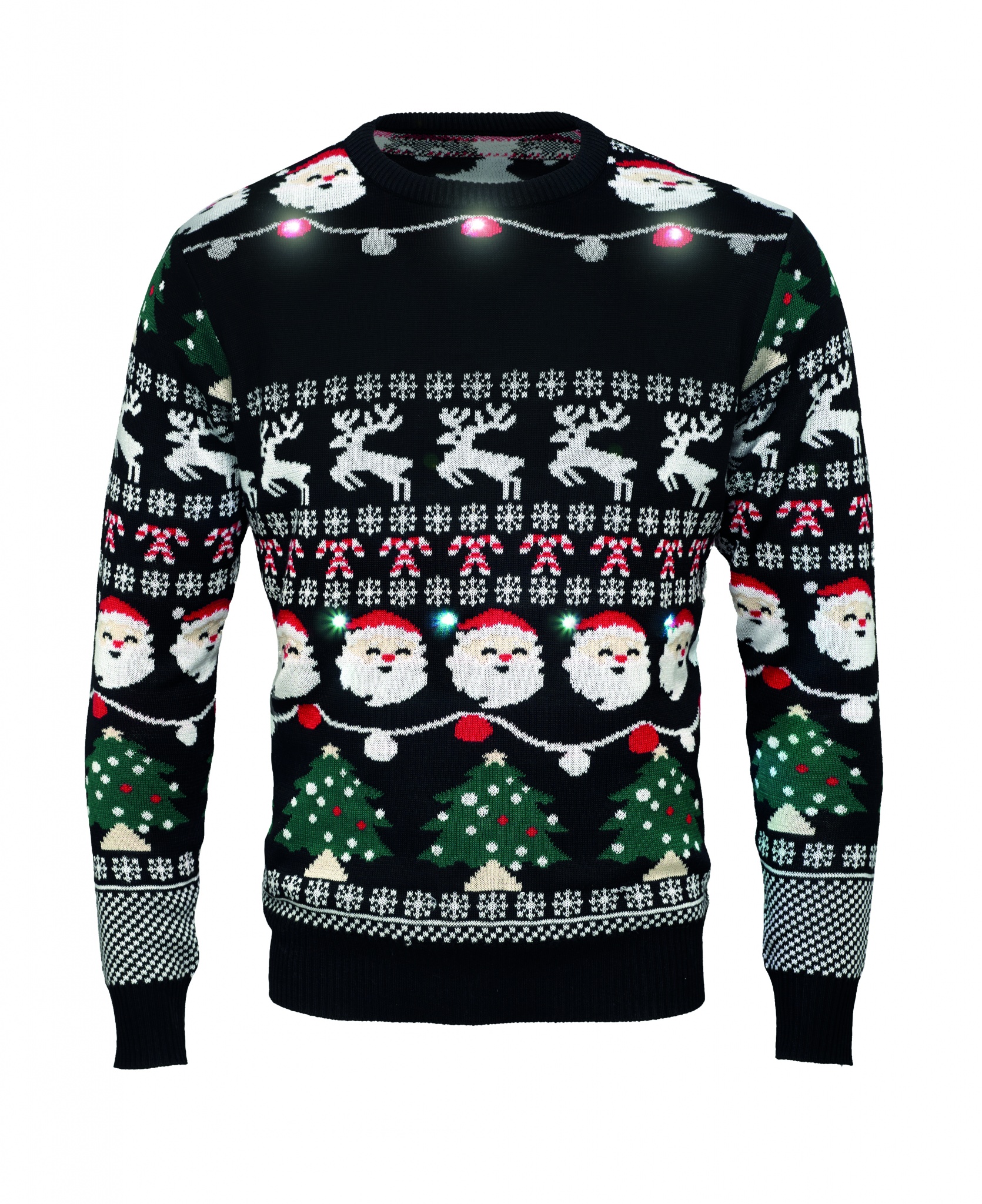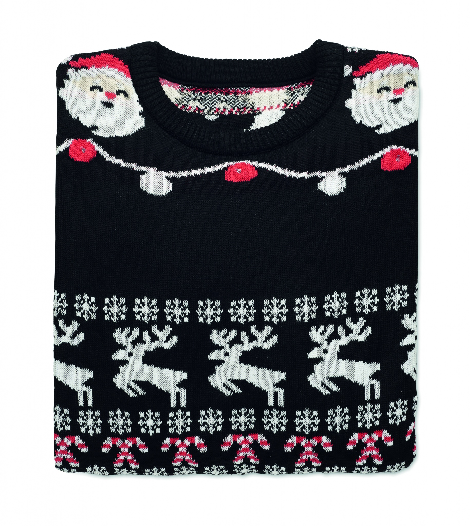 Свитер из акрила с 10 светодиодными лампочками. Размер: S/M. Удивите коллег на работе или родственников на семейном рождественском ужине этим праздничным свитером. Съемный карман для батареек.