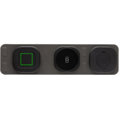Лого трейд бизнес-подарки фото: Swiss Peak RCS rplastic 3-в-1 беспроводное дорожное зарядное устройство мощностью 15 Вт