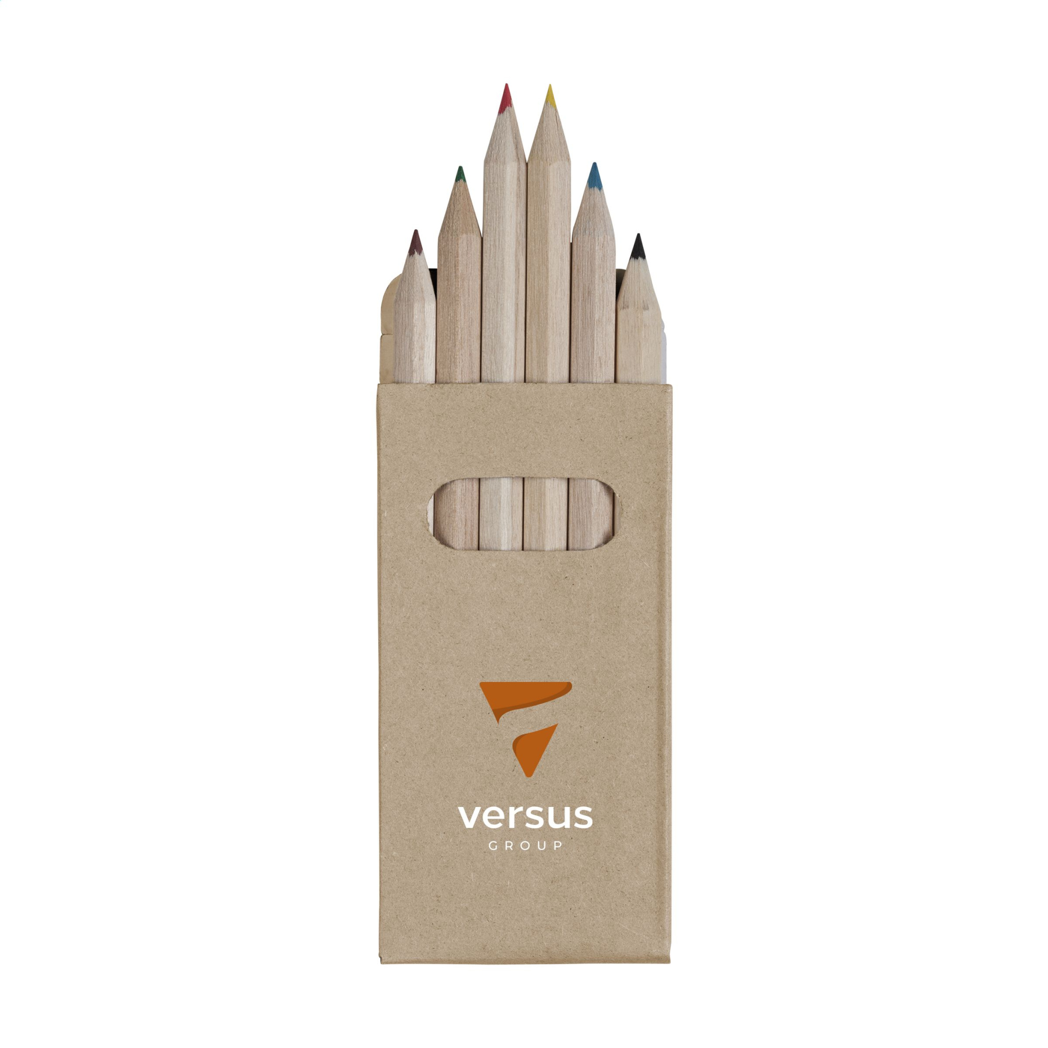 6 деревянных, неокрашенных цветных карандашей в коробке из переработанного картона.