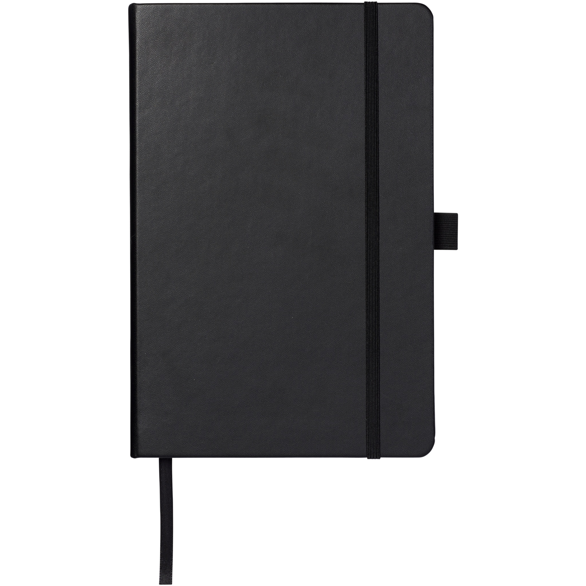 Записная книжка из искусственной кожи формата A5 (14,2 x 21,4 см) с резинкой, лентой-закладкой, петлей для ручки и задним карманом. Состоит из 96 листов линованной бумаги кремового цвета плотностью 70 г/м2 и поставляется в белом футляре Journalbook.
