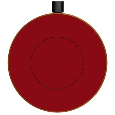 Беспроводная зарядная станция мощностью 10 Вт, изготовленная из резины и дерева (сертификат FSC), с зарядным кабелем из переработанных пластиковых бутылок. Возможно нанесение логотипа с подсветкой. Поставляется в подарочной коробке из черной крафт-бумаги с магнитной защелкой. Патент Ведомства по интеллектуальной собственности Европейского союза.