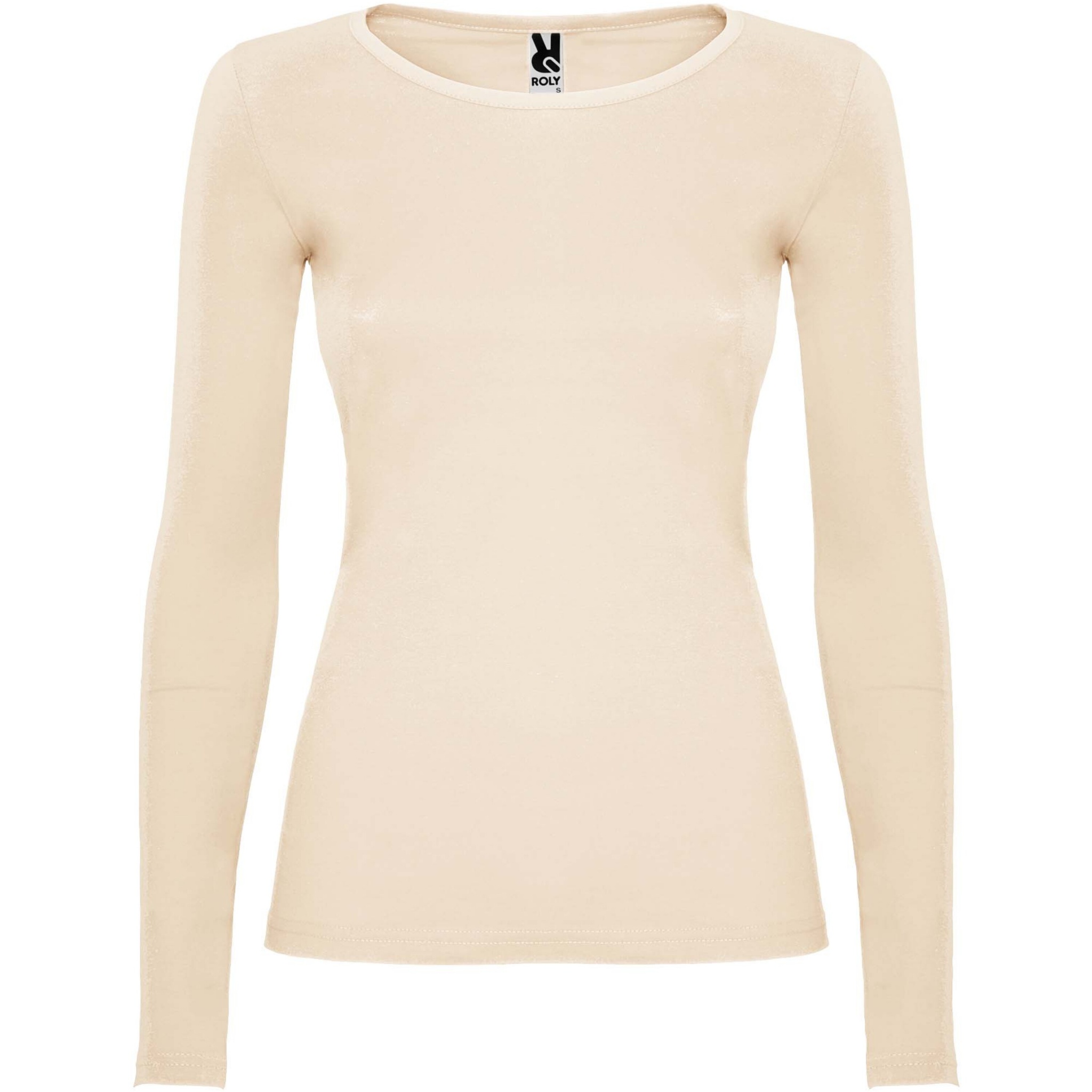 Полуприталенная футболка с длинными рукавами и горловиной с тонкой окантовкой. Без манжет. Боковые швы. Съемная этикетка.