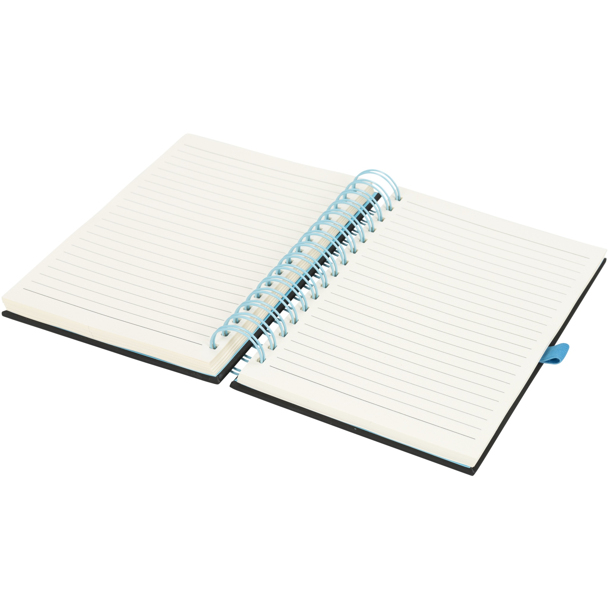 Новинка в нашей популярной коллекции блокнотов. В этом универсальном новом блокноте есть гладкая черная обложка из ПУ, цветная спираль и застежка-держатель для ручки. Содержит 160 листов линованной бумаги (70 г/м²) кремового цвета.