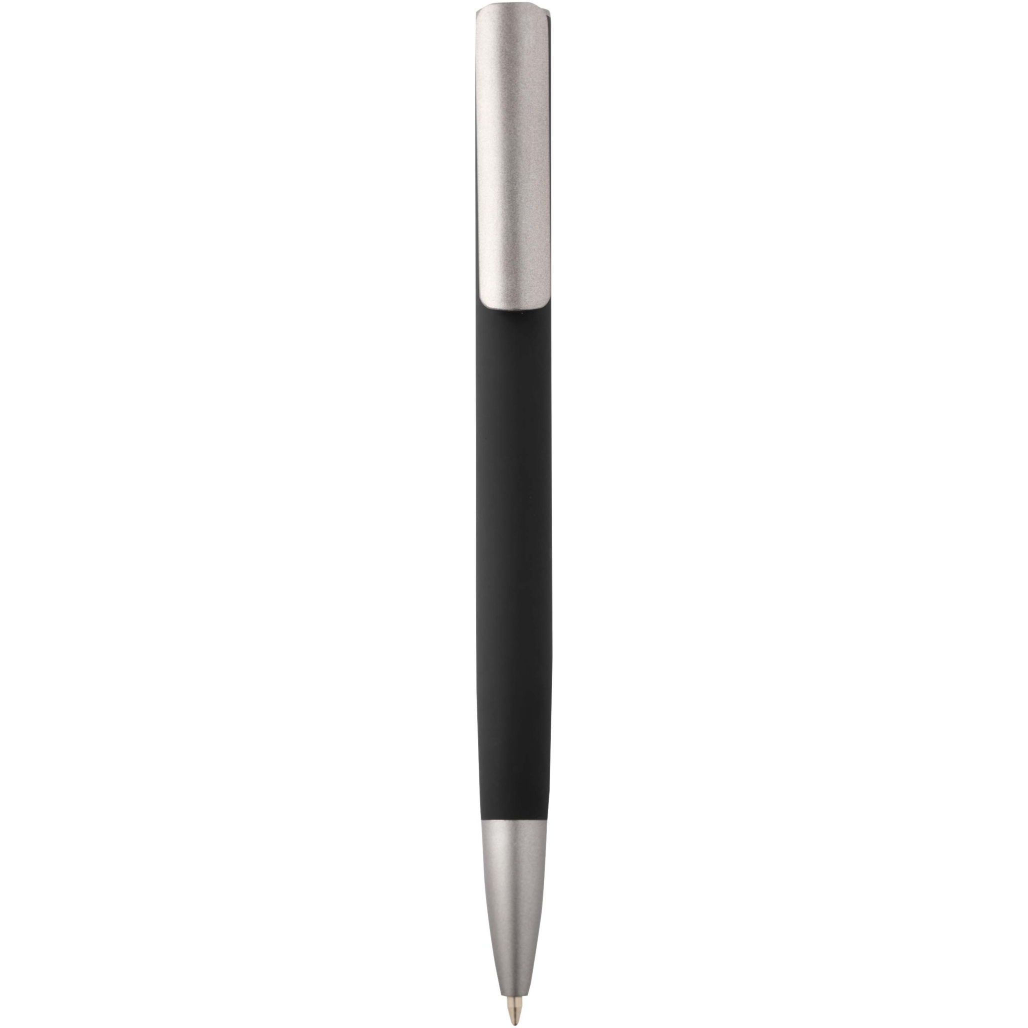 Шариковая ручка с корпусом из переработанного алюминия и посеребренным зажимом из пластика ABS. Цвет чернил: синий. Длина непрерывной линии: 800 метров. Размер пера: 1,0 мм.