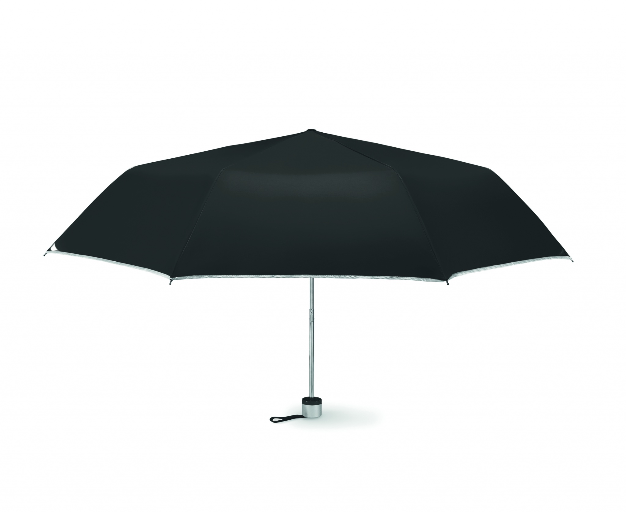 Зонт в 3 сложения с серебряной подкладкой изнутри. Подходящий по цвету чехол. 8 клиньев. Полиэстер 190Т.