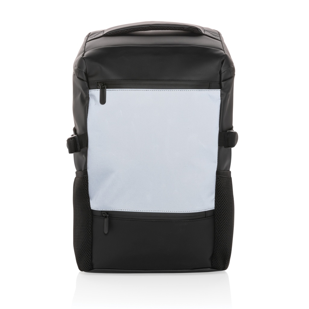 Laptopryggsäck med stora ytor reflekterande material som gör att du är väl synlig i mörkret. I ryggsäcken finns det gott om plats i det rymliga huvudfacket som har ett 15.6" laptopfack och ett litet fack för nycklar eller mobil. Den stora blixtlåsförsedda öppningen gör det enkelt att snabbt få en överblick över innehållet. Vattentålig. Reflektiviteten är testad i enlighet med EN 13356:2001.