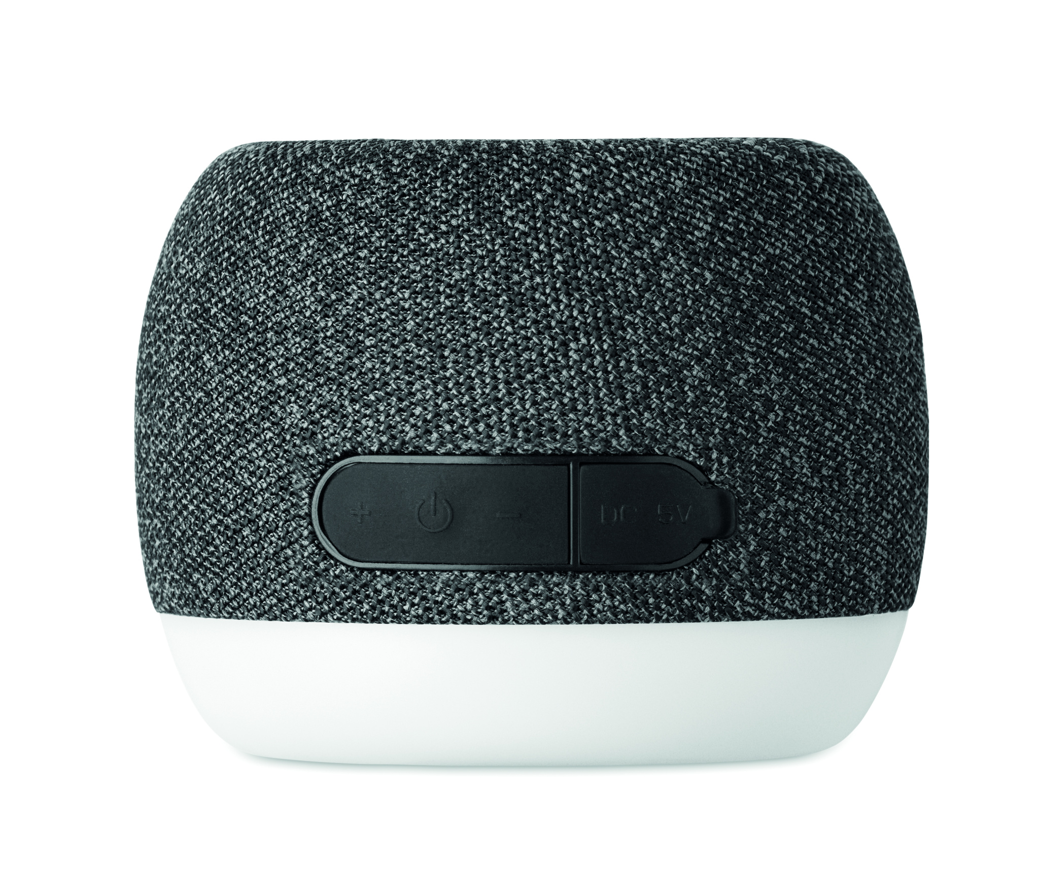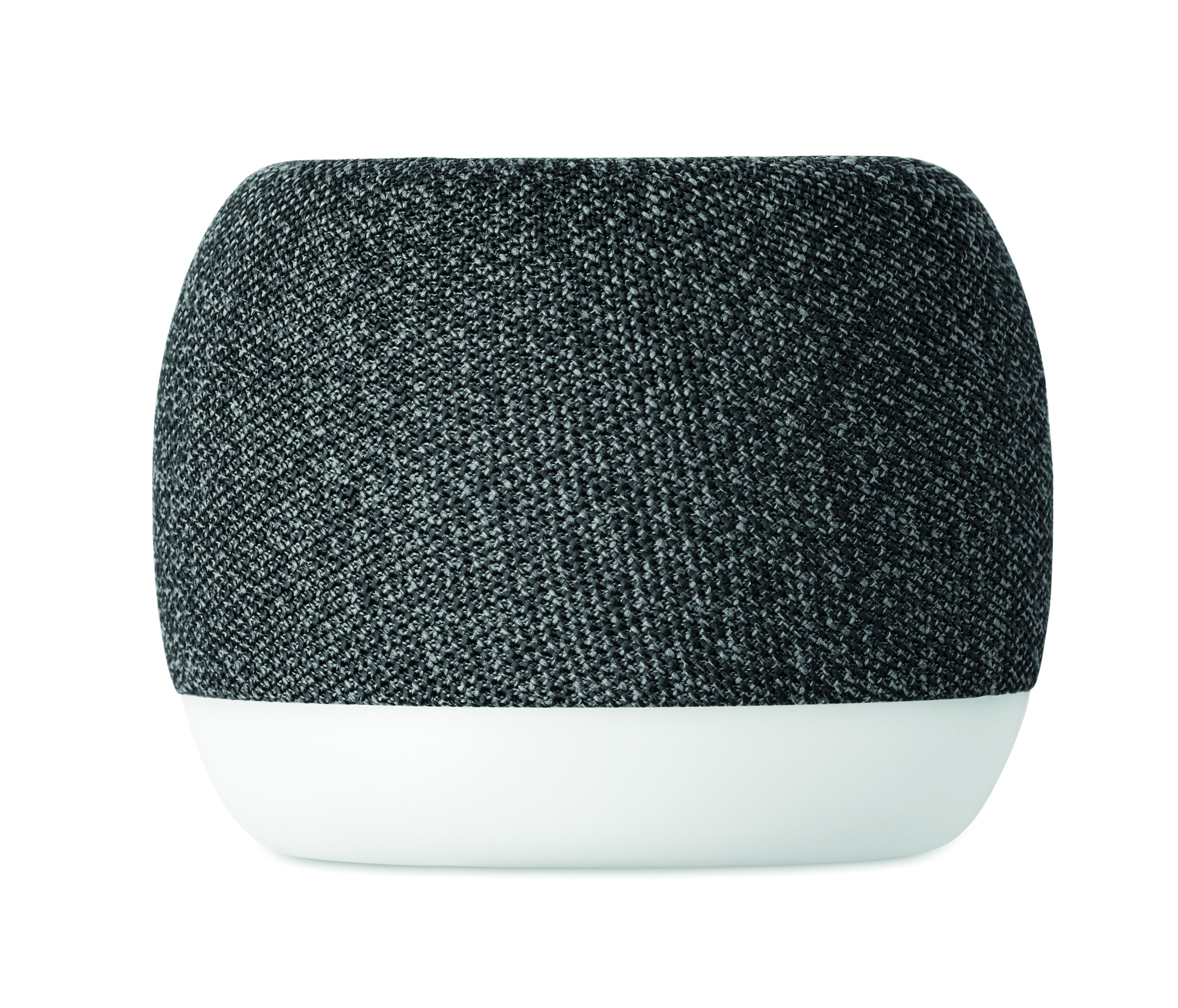 5.0 trådlös högtalare och 15 W trådlös laddning i ABS och RPET-tyg och svartlackerad bambu på ovansidan med moodlight-bas. 1 uppladdningsbart Li-ION 1200 mAh batteri ingår. Inkluderar en SD-kortport och en AUX/ USB-kabel. Uteffekt: 5W, 3 Ohm och 5V. Speltid