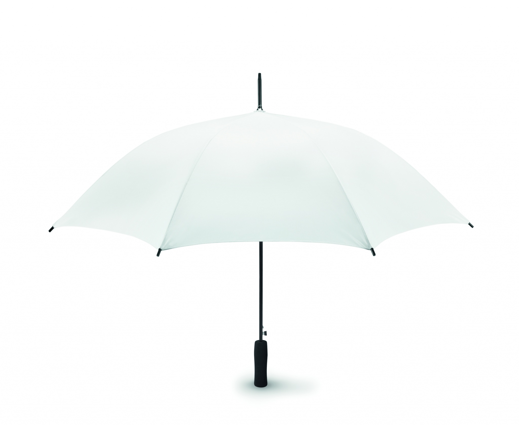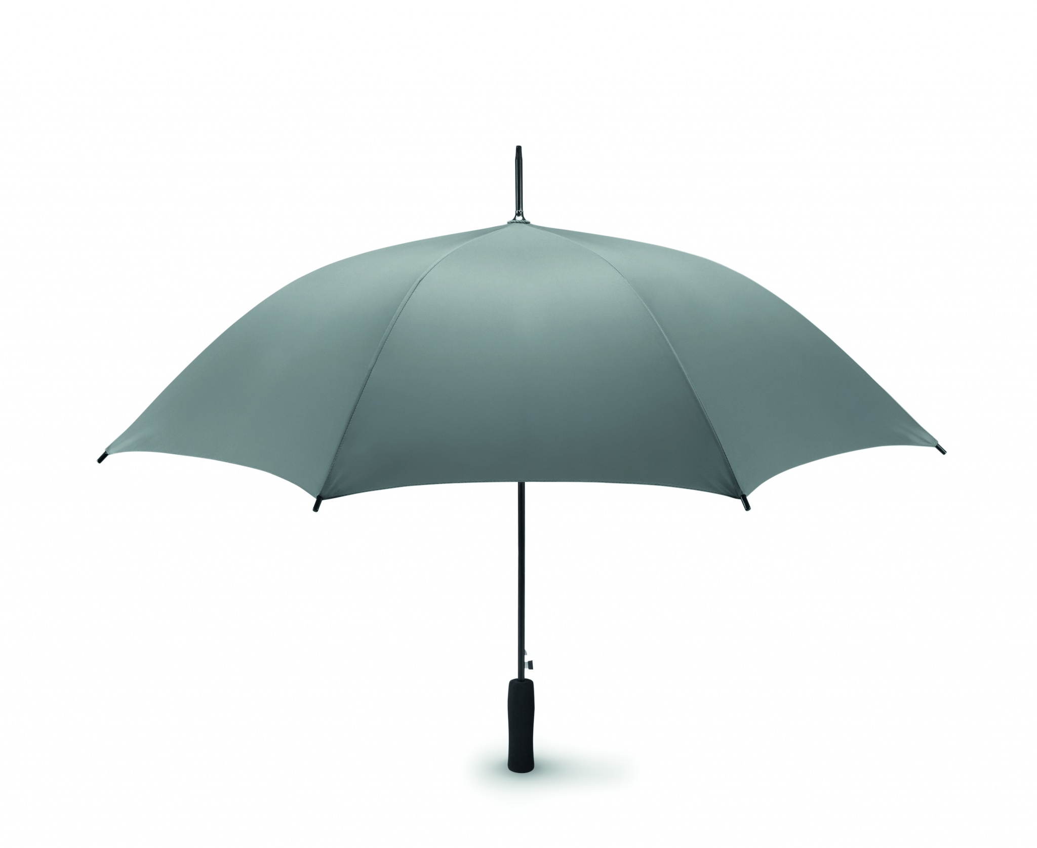 Promenadparaply, 23 tums i 190T polyester med svart pläterat stålskaft och spröt. Svarta plast tippar. Rakt svart handtag i mjukt EVA material. Manuel stängning och automatisk öppning.