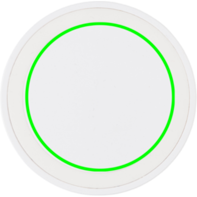 Trådlös laddare med silikonring som håller telefonen på plats. LED-lampan indikerar att enheten laddar. Kompatibel med alla QI-aktiverade enheter som senaste generationen Android, iPhone 8 och upp. Input: 5V/1,5A. Trådlös output: 5V/1A, 5W