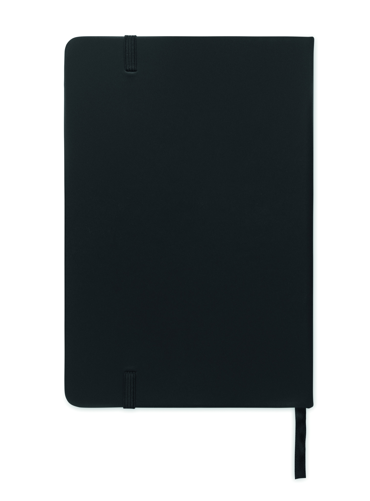 A5 anteckningsbok i hårt omslag tillverkat av 58% återvunnen polyester och 42% PU inklusive integrerat 16GB USB-minne. Inbunden, 160 linjerade sidor av återvunnet papper (80 ark). Matchande elastisk förslutningsrem och sidmarkering i band. FSC®-certified | FSC MIX CREDIT, P7.1, FSC-C213206