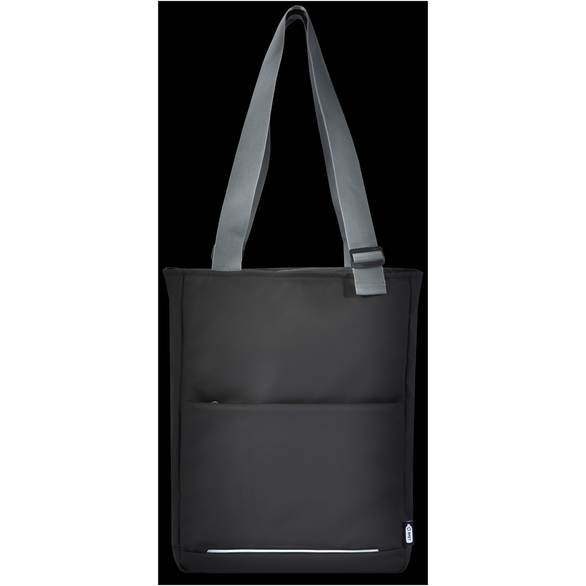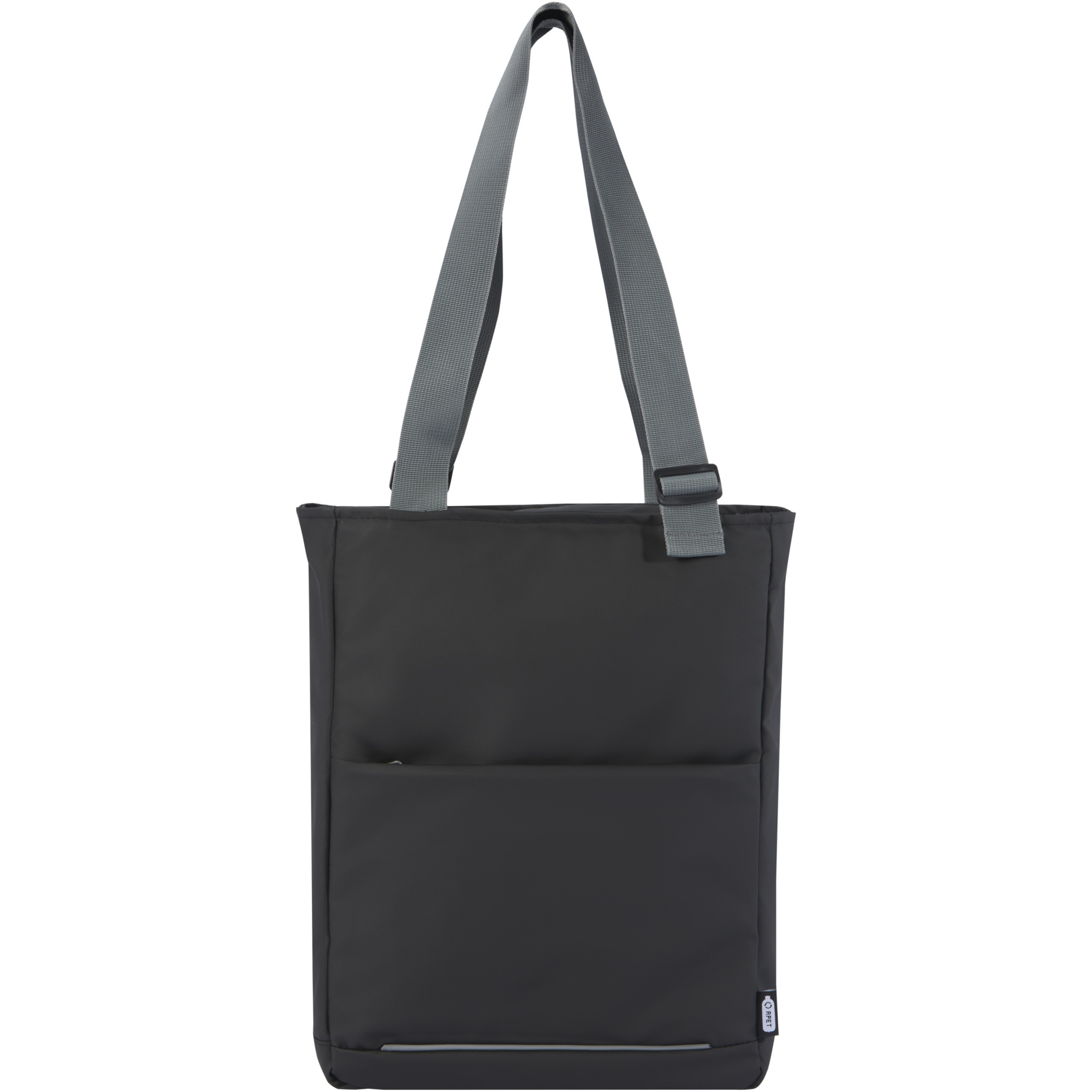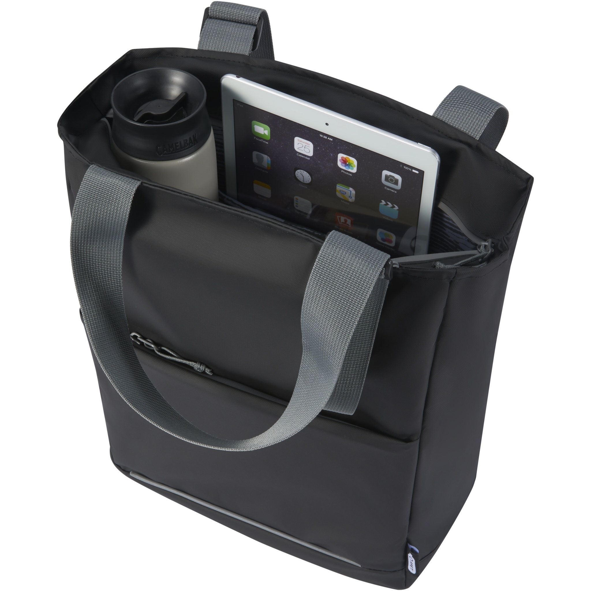 Vattentålig laptopstygväska tillverkad av återvunna GRS-material inklusive dragkedjorna. Den har ett dedikerat surfplattefodral, ett 14-tums laptopfack, flera fickor för organisering, en främre ficka med organiseringspanel, justerbara 35 cm långa handtag och en bagagerem. De återvunna GRS-materialen inkluderar huvudtyget, fodret, väven och dragkedjorna. Kapacitet: 14 liter. PVC-fri.