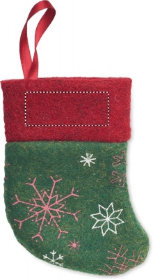 Bestickset för julbord med sked och gaffel i rostfritt stål och en 150 gr/m² bomullsservett. Kommer i en julstrumpeformad påse.
