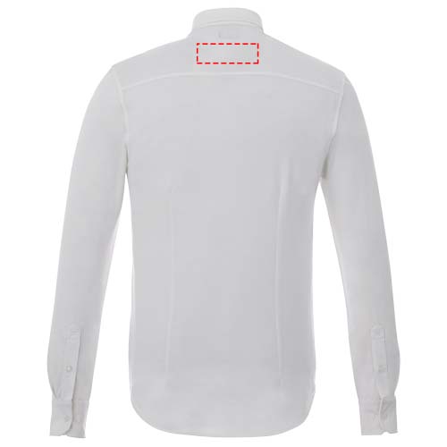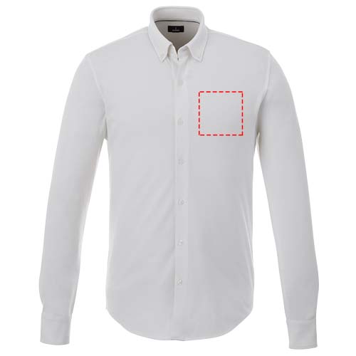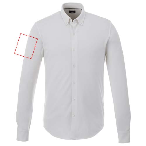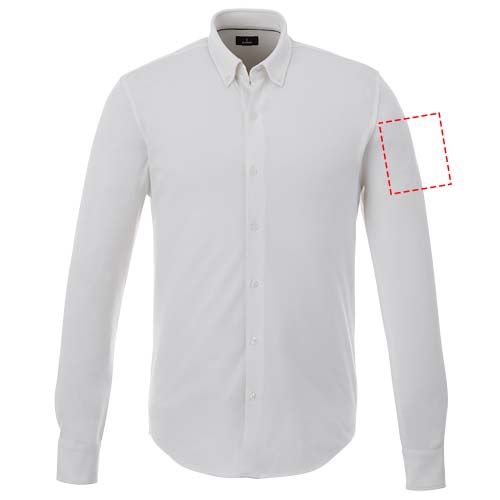 Bigelow långärmad herrpiké. Krage i samma material.Stretchtyg.Justerbar mudd med enkelsöm.Button down-krage.Satin piping på insidan.Graverade ton-i-ton knappar.Vävd nacketikett. Stickad dubbel piké av 95 % bomull och 5 % elastan. 200 g/m².