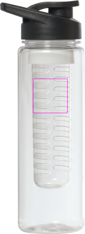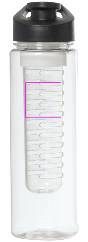 Stor, läckagesäker dricksflaska BPA-FRI (kapacitet 700 ml) med avtagbar fruktinsats. I locket finns en stor dricksöppning med stängning och ett bärhandtag integrerat. Vi trycker din logotyp på flaskan.