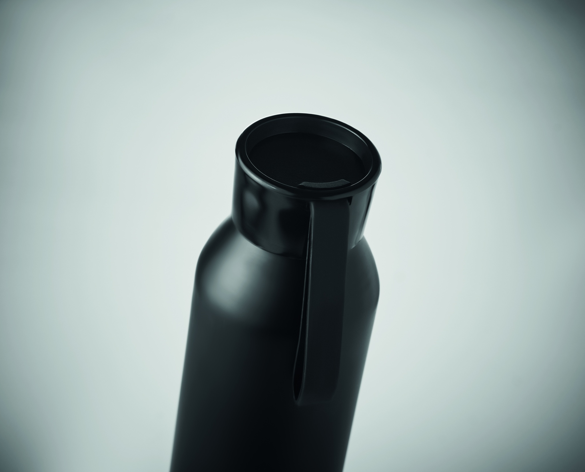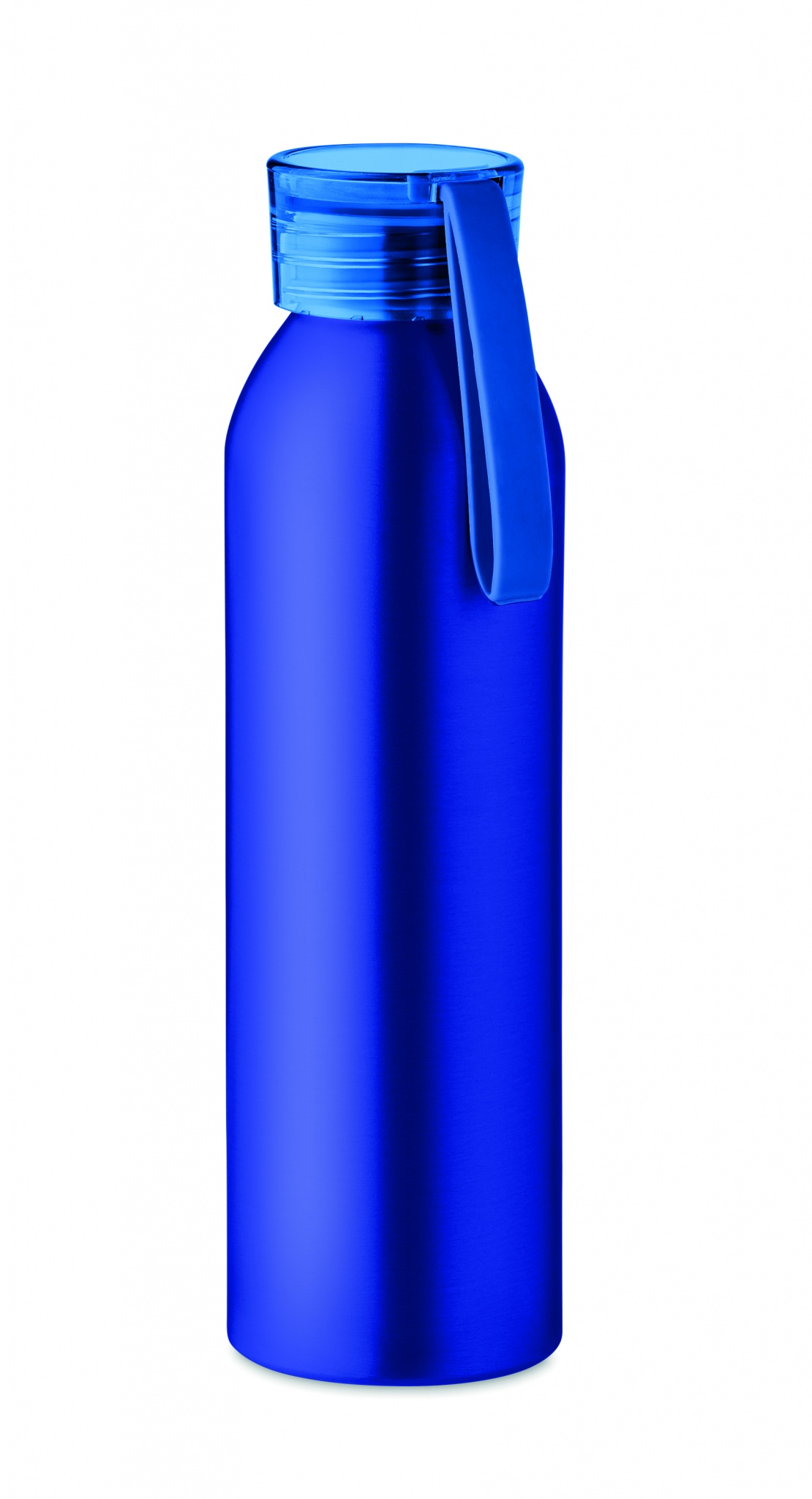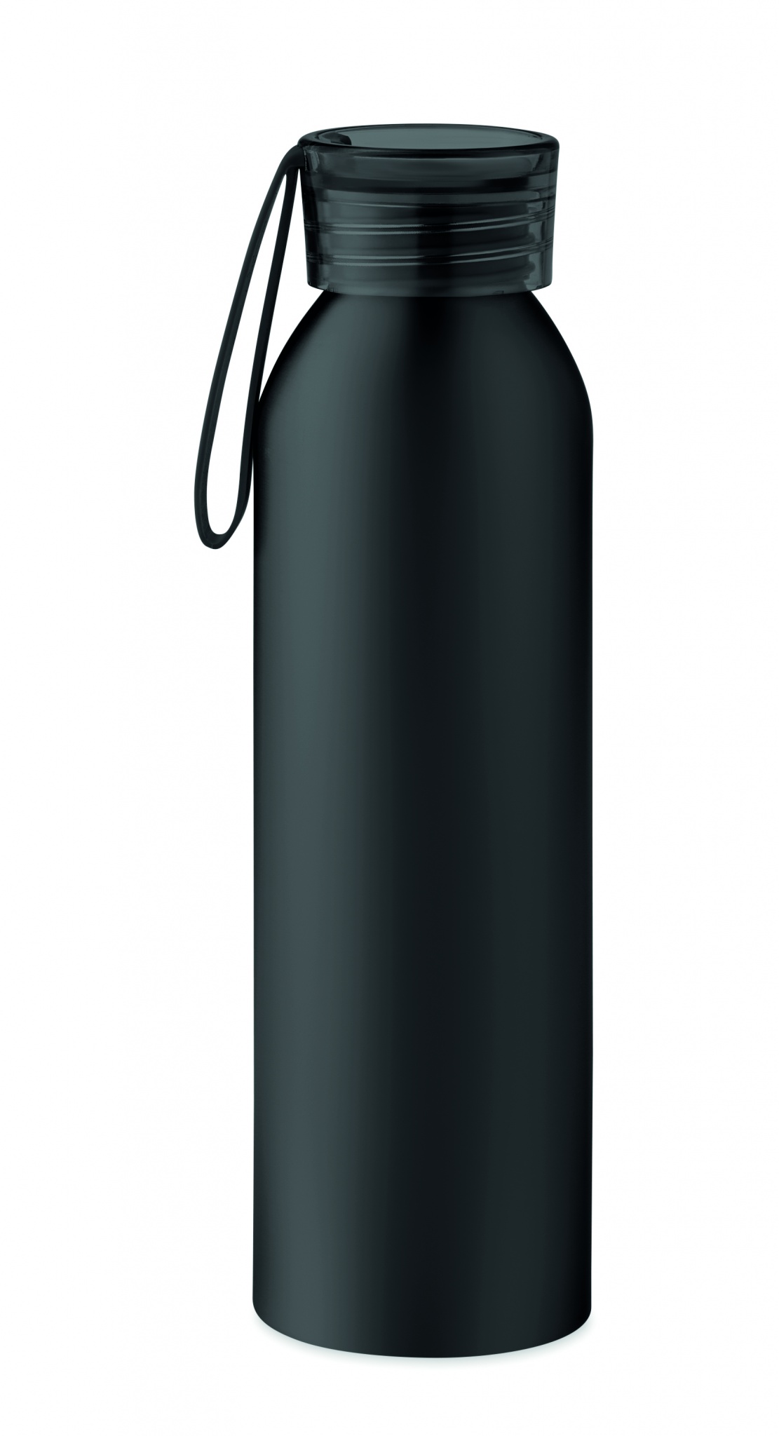 Flaska i återvunnen aluminium med PS-locket och silikonhängare. Kapacitet: 600 ml. En enkel och lätt flaska för vardagen och utmärkt för att öka din varumärkesexponering. Det är viktigt att hålla vätskebalansen under dagen, så fyll den här flaskan med vatten och ha den med dig. Läcker inte. Tål ej diskmaskin.