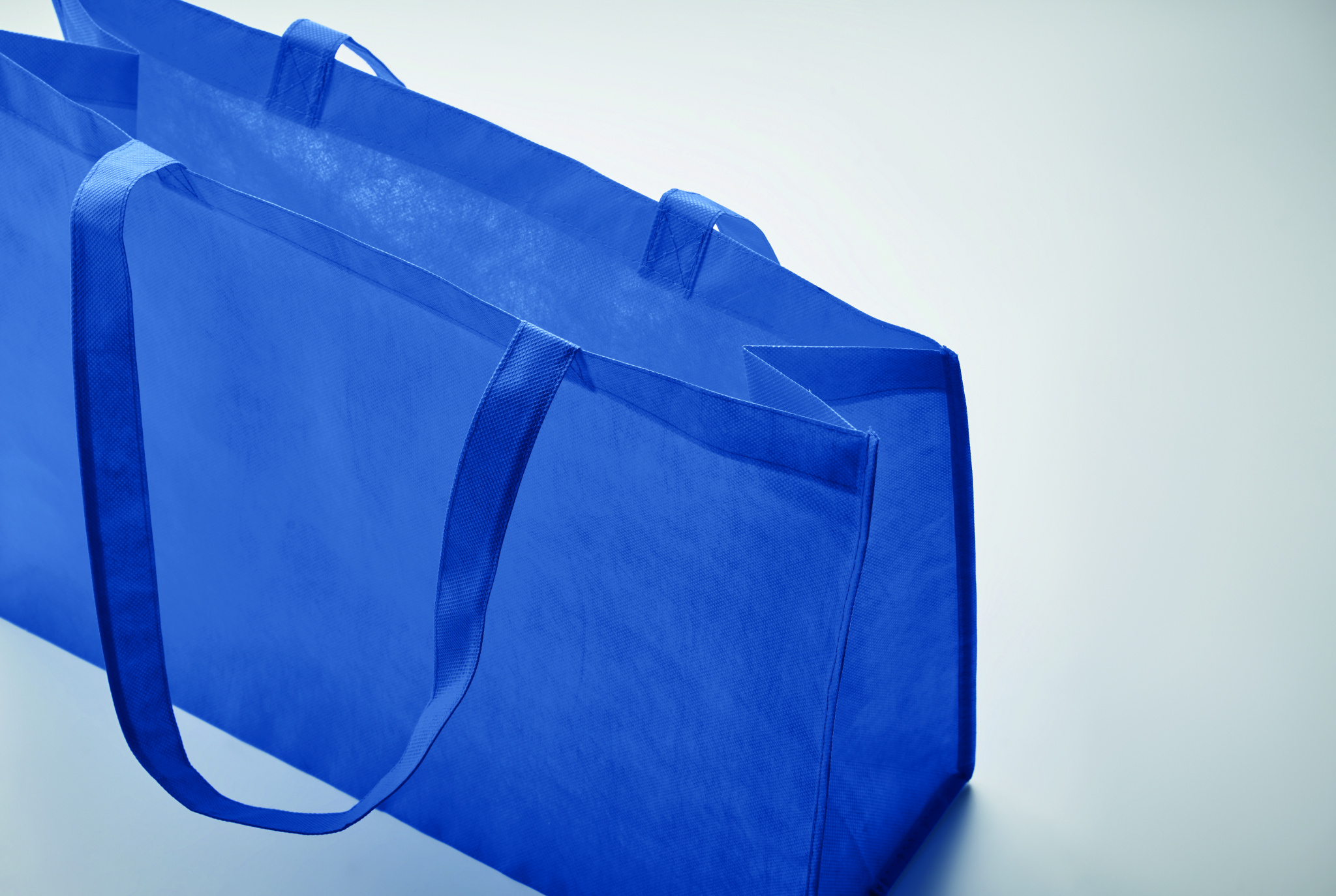 Shopping- eller strandväska i RPET non-woven med kilar och långa handtag. 80 gr/m².
