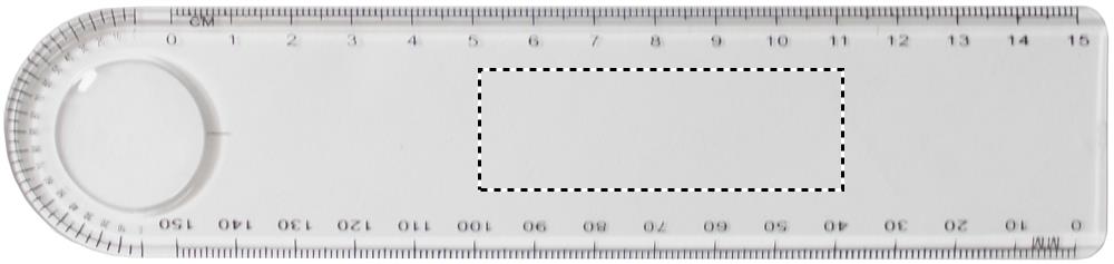15 cm plastlinjal med förstoringsglas och gradskiva.