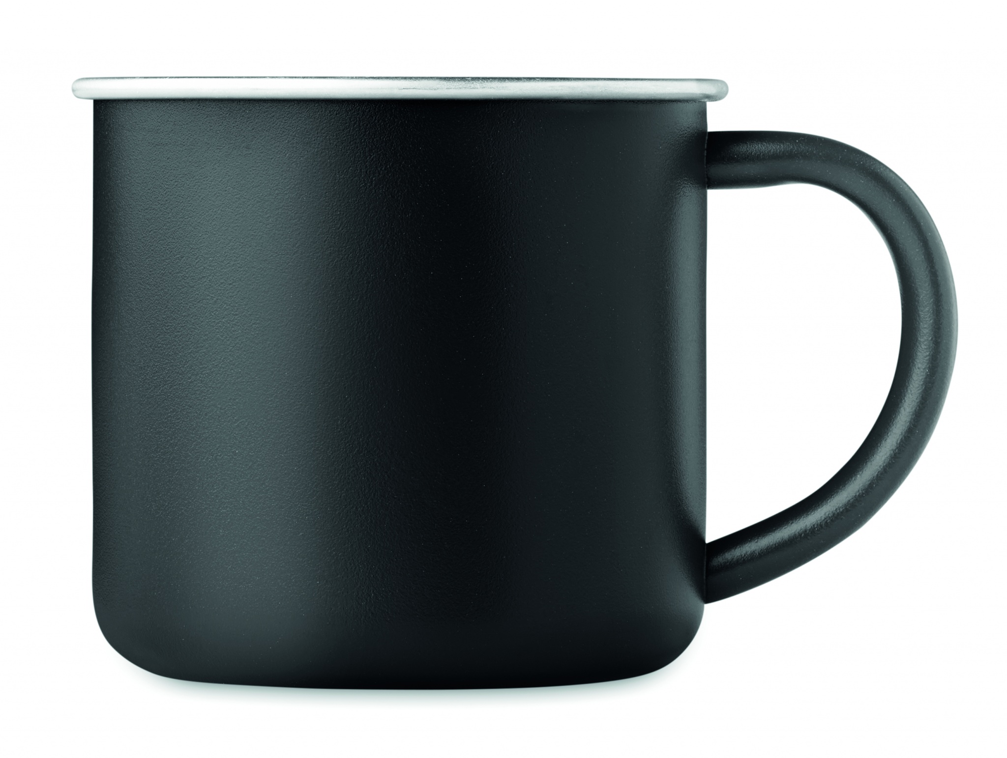 Enkelväggig mugg i återvunnet rostfritt stål (90% återvunnet rostfritt stål och 10% rostfritt stål). Kapacitet: 300 ml.