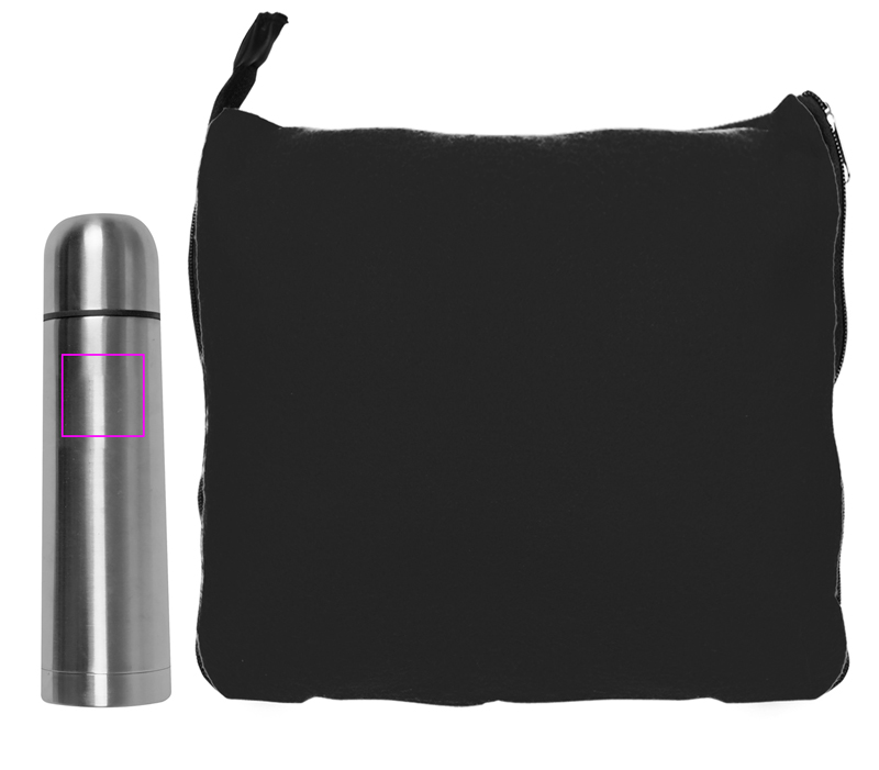Perfekt duo! Dina kunder kommer att ha allt de behöver för en mysig kväll eller en resa med detta fina set. Du får en snygg 2-i-1 fleecefilt (180 x 120 cm), som kan göras om till en kudde med hjälp av den bifogade dragkedjan och en termoflaska med 500 ml innehåll. Vi kommer antingen gravera din logotyp på kolven eller genom broderi på filten. Enkelpackad i kartong.