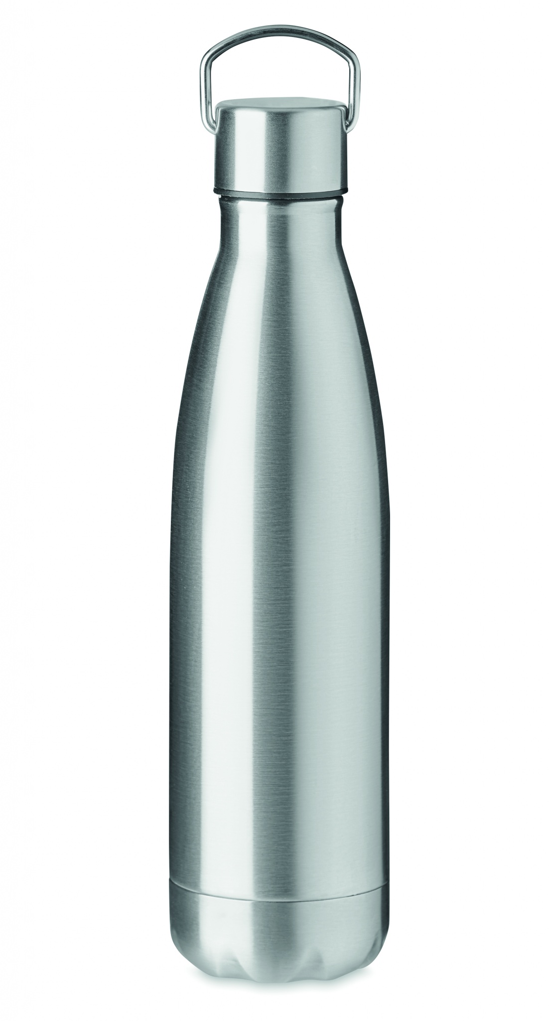 Dubbelväggig flaska i rostfritt stål isolerd med vakuum och koppar för extra hög prestanda. Kopparen ger mycket goda värme - och kylegensaper som endast återfinns på de dyrare modellerna. Lock med handtag. Kapacitet 500 ml. Läcker inte.