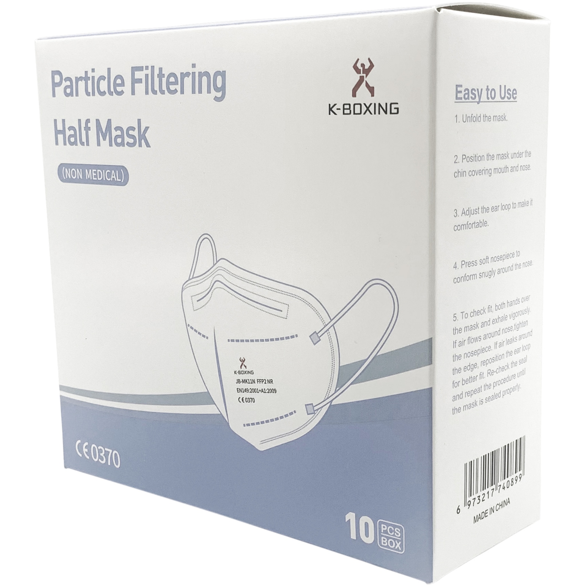 5 lager FFP2-ansiktsmask med mjuka och starka elastiska öronband och näsklämma som garanterar en bra passform. Masken för engångsbruk har en enastående filtreringseffektivitet (> 98%) och kan användas av alla inklusive sjukvårdspersonal för att undvika korskontaminering. Skyddar omgivningen från partiklar som maskens användare utsöndrar samt skyddar användaren från omgivande partiklar. Är bekväm att använda tack vare sitt andningsbara material och irriterar inte huden. Varje mask är förpackad var för sig i polybag storlek: 11,8 x 15,7 cm och levereras i en 10-pack fullfärgad lådstorlek: 14 x 13 x 5 cm. Överensstämmelse: EN149: 2001 + A1: 2009. CE-certifiering: utfärdat av LGAI - anmält organ 0370. Modul B Certifiering nr: 0370-4620-PPE / B. Modul C2-certifiering nr: 0370-4620-PPE / C2. FFP2-godkänd i enlighet med EN 149 + A1: 2009 (EUR).