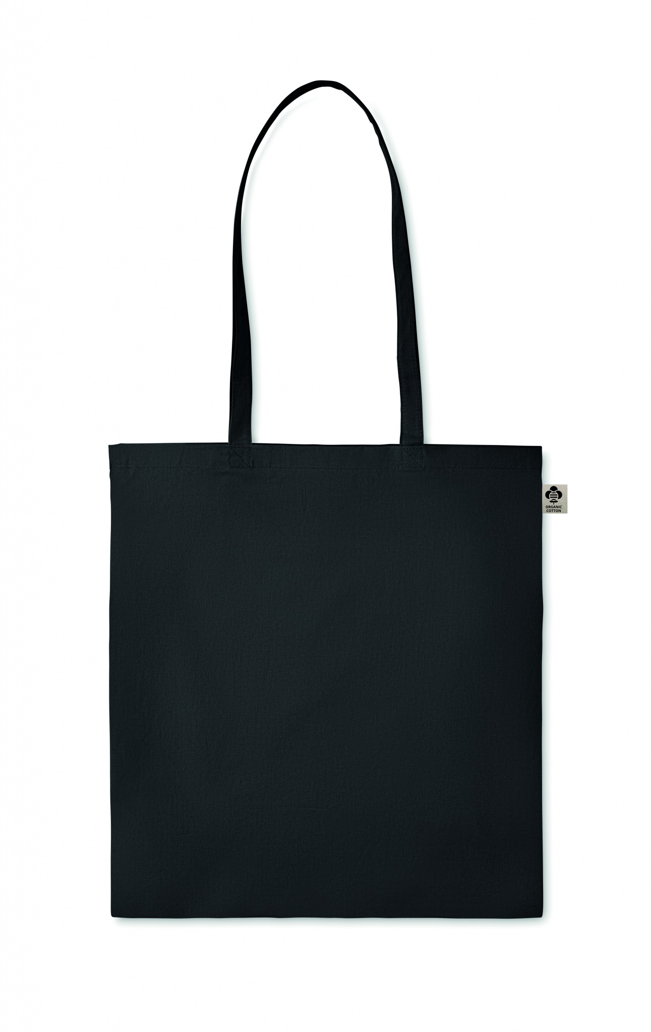 Kasse i ekologisk bomull med långa handtag. 140 gr/m².