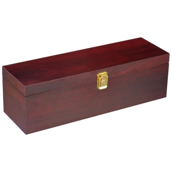 Snygg vinlåda utrustad med en servitörskniv, en droppring, en flaskpropp i metall och en upphällare med lock. Din logotyp kommer att placeras på locket längst ner till höger, helst i guld.